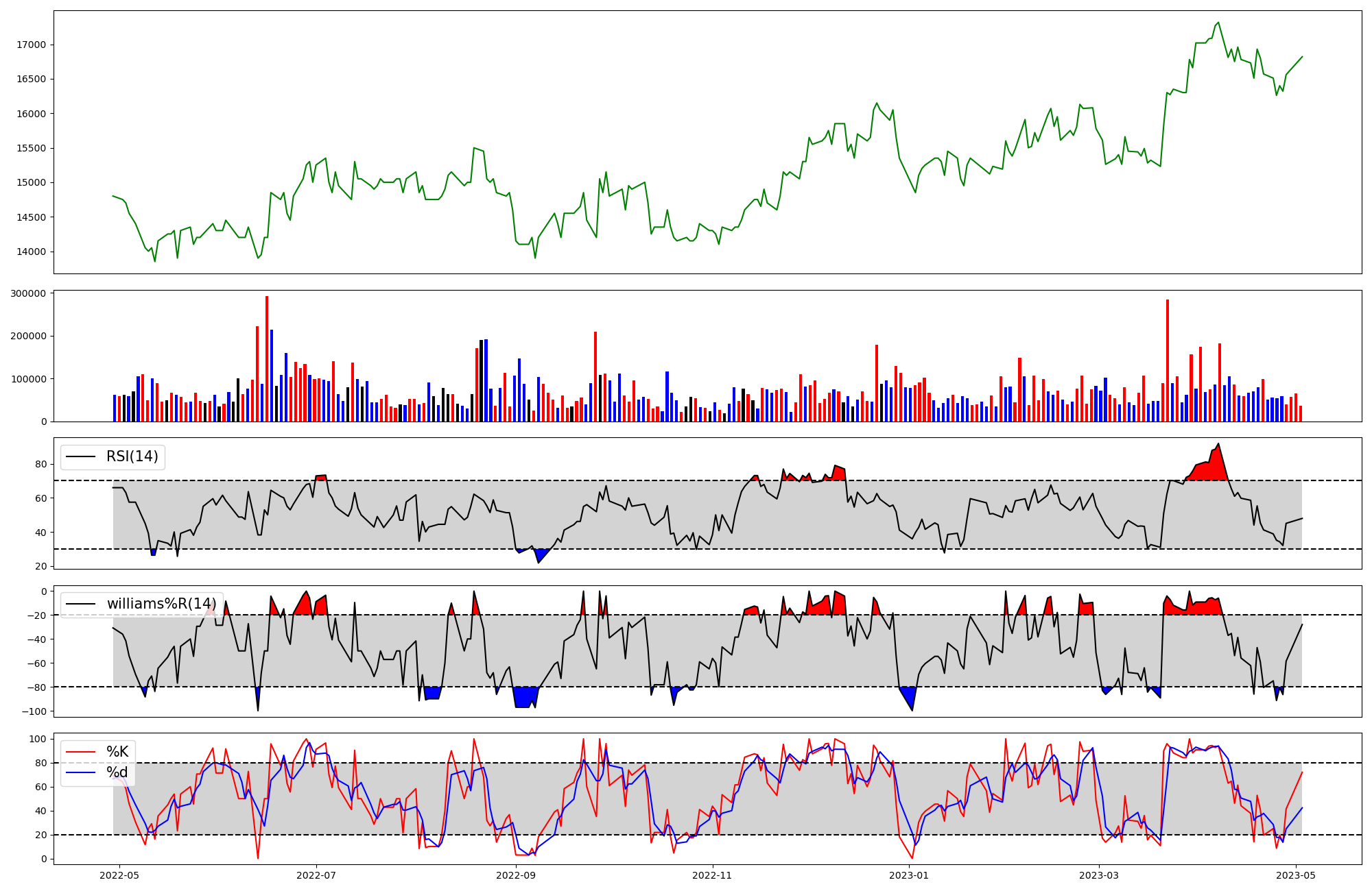 | RSI | Williams %R | stochastic(%K) | |