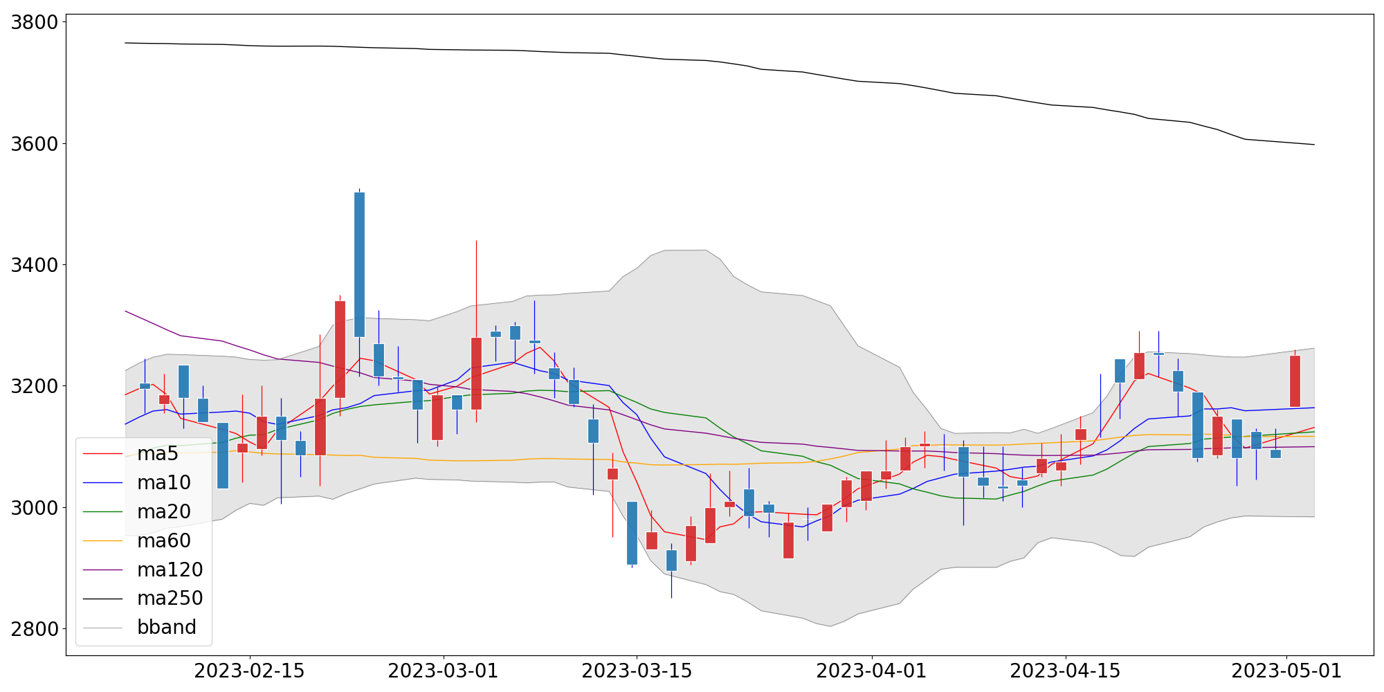 | 단순이동평균 | 3,131.00 | 3,163.50 | 3,123.75 |