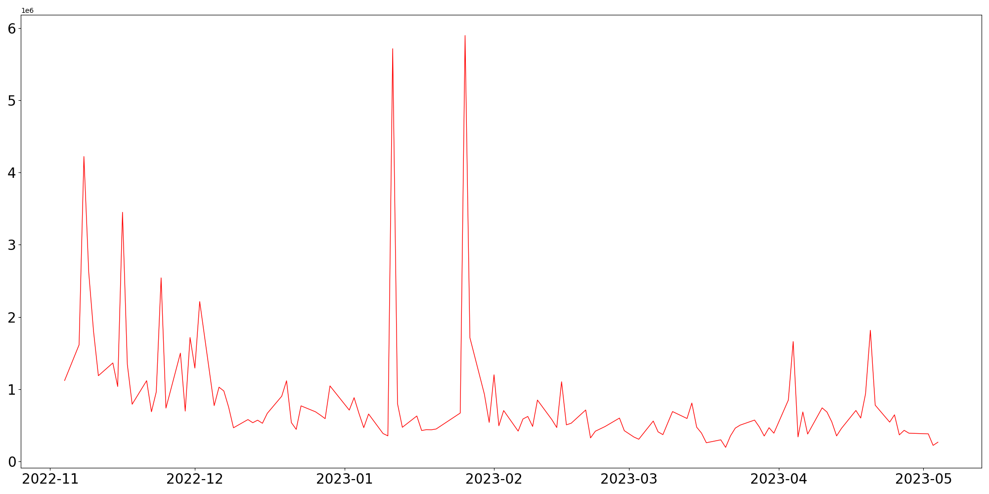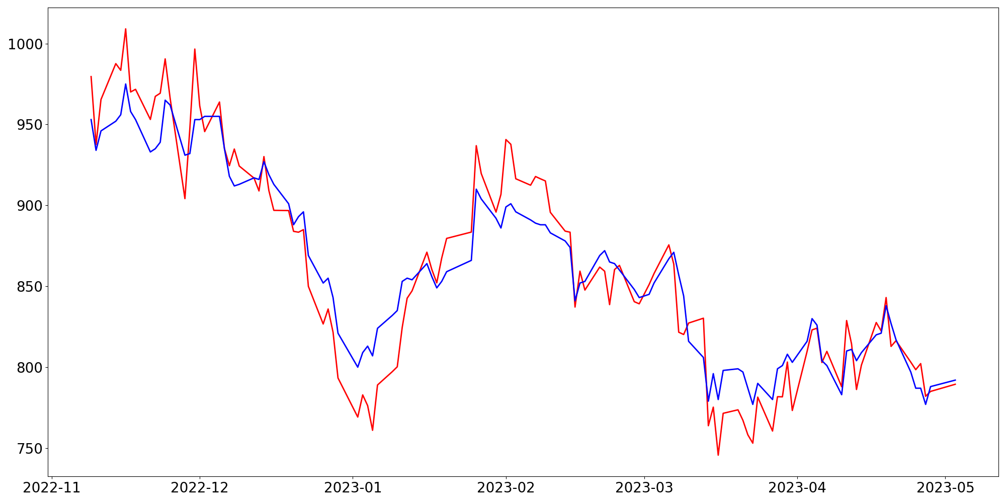 [ - : 실제값(종가) / - : 예측값(종가) ]