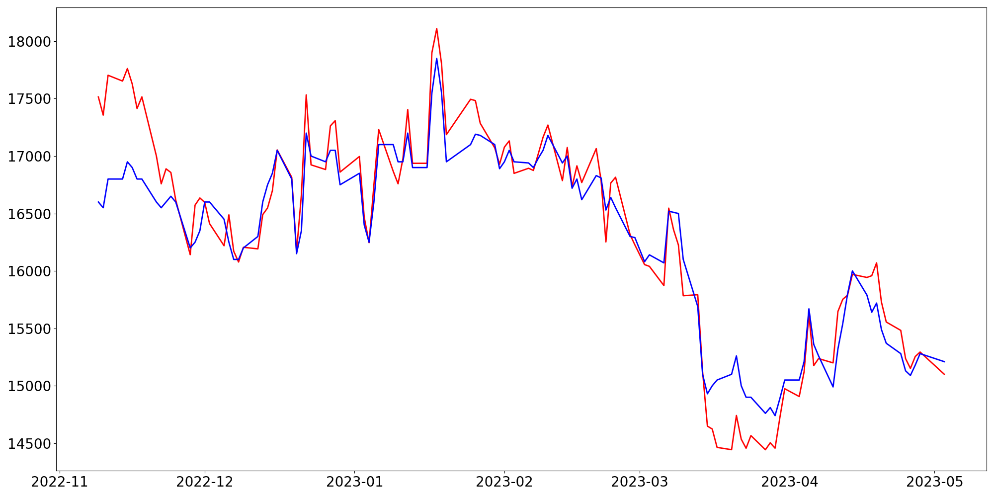 [ - : 실제값(종가) / - : 예측값(종가) ]