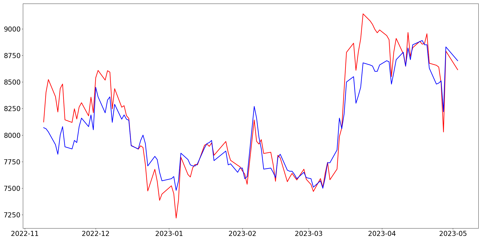 [ - : 실제값(종가) / - : 예측값(종가) ]