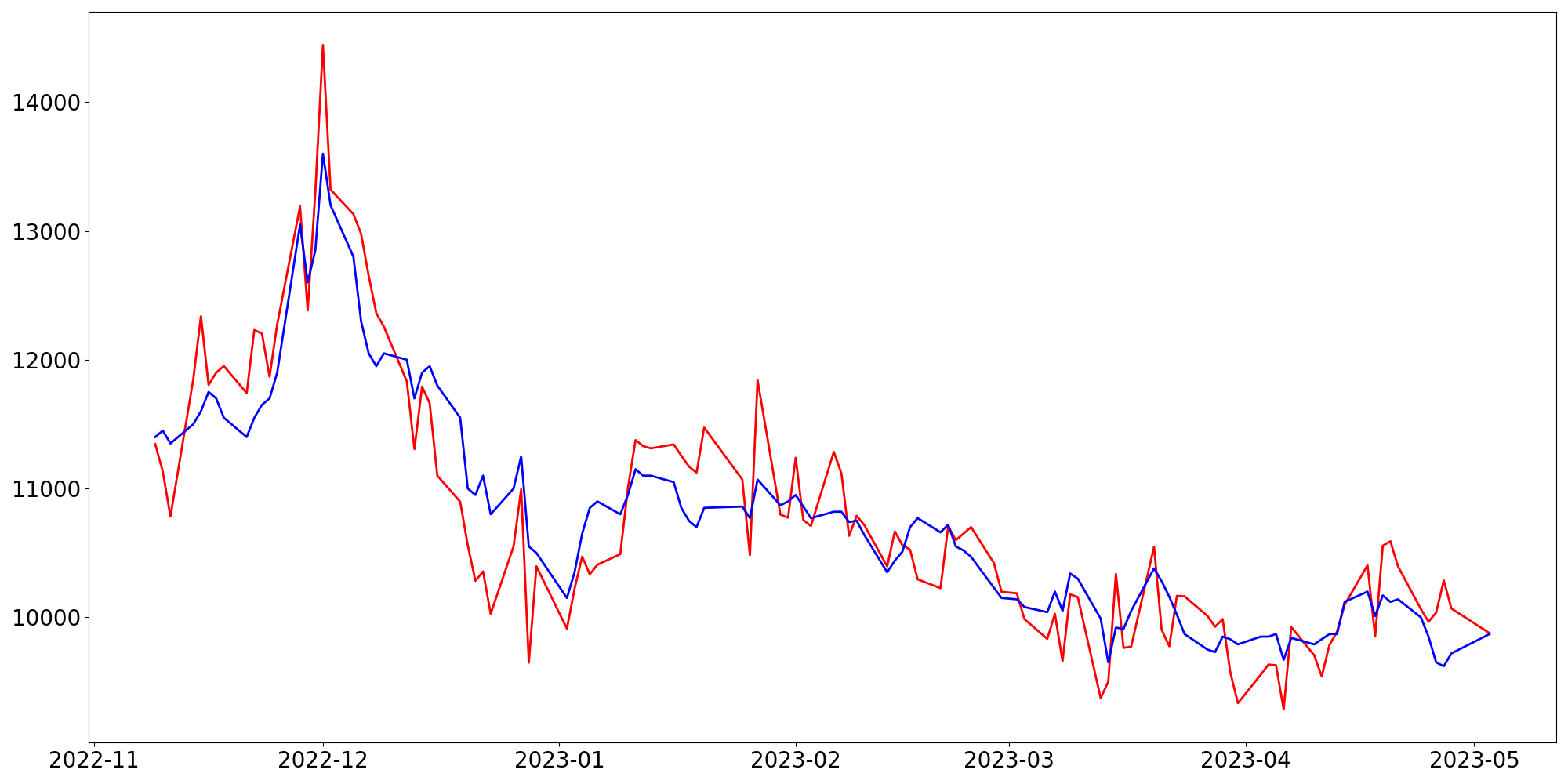 [ - : 실제값(종가) / - : 예측값(종가) ]