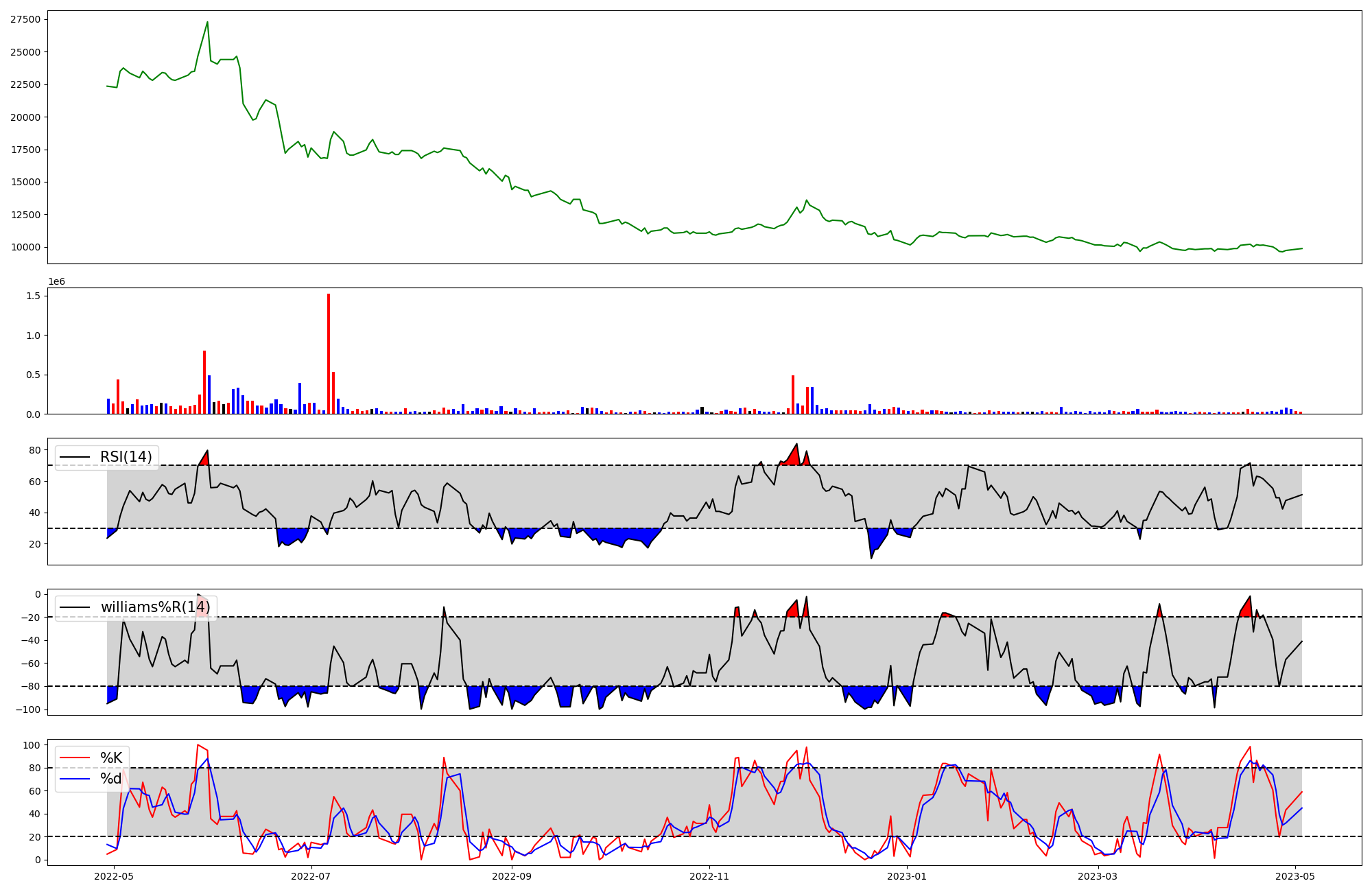 RSI Williams %R stochastic(%K)