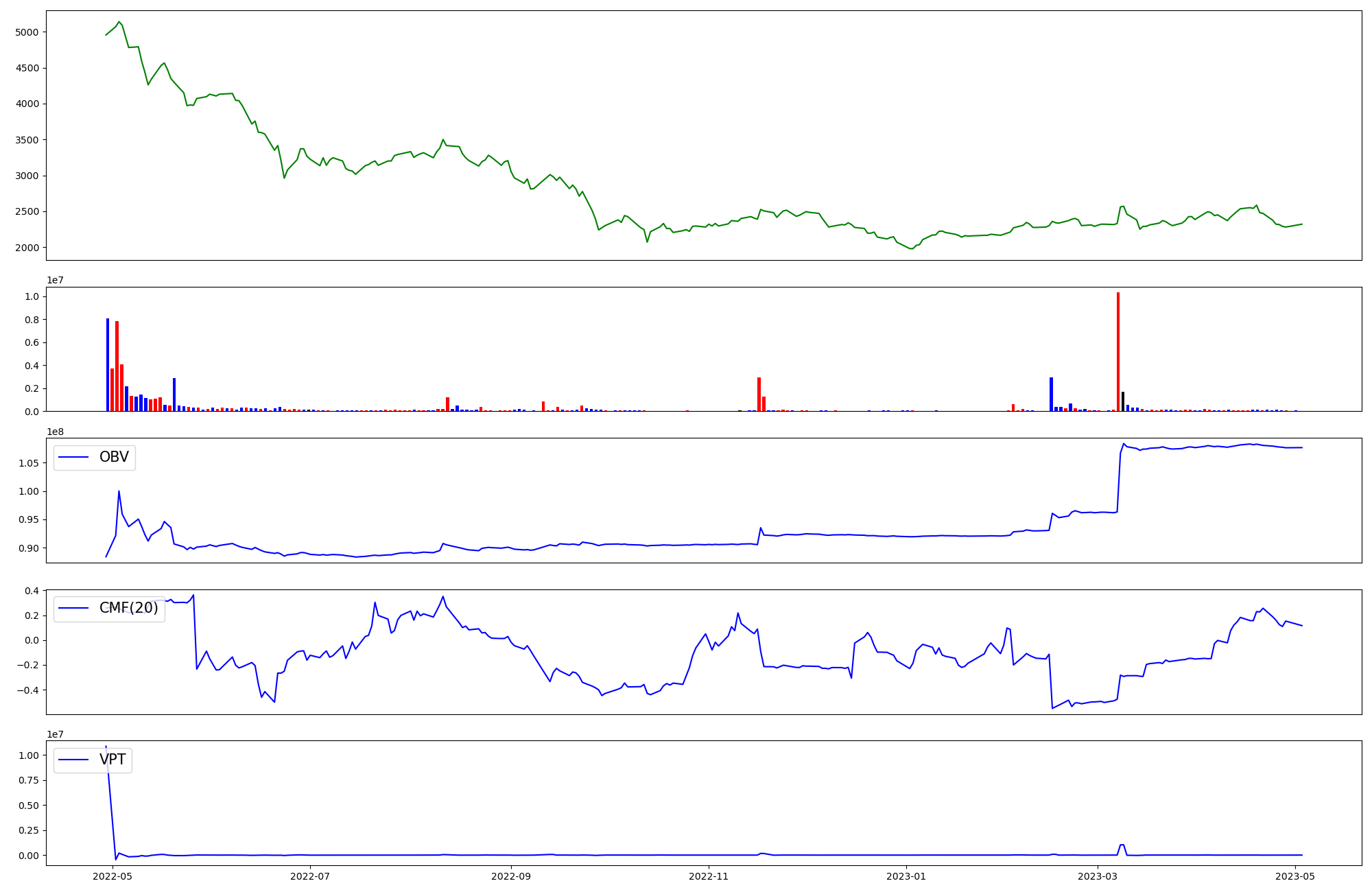 | OBV | CMF | VPT | |