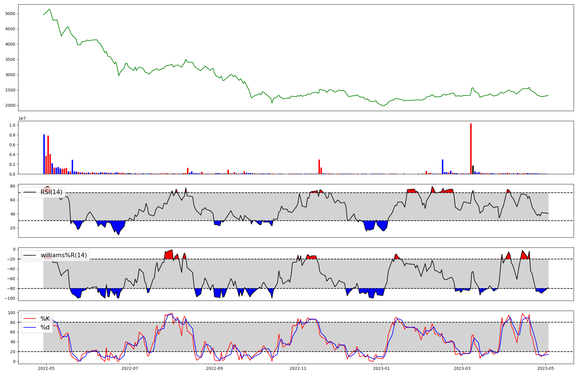 | RSI | Williams %R | stochastic(%K) | |