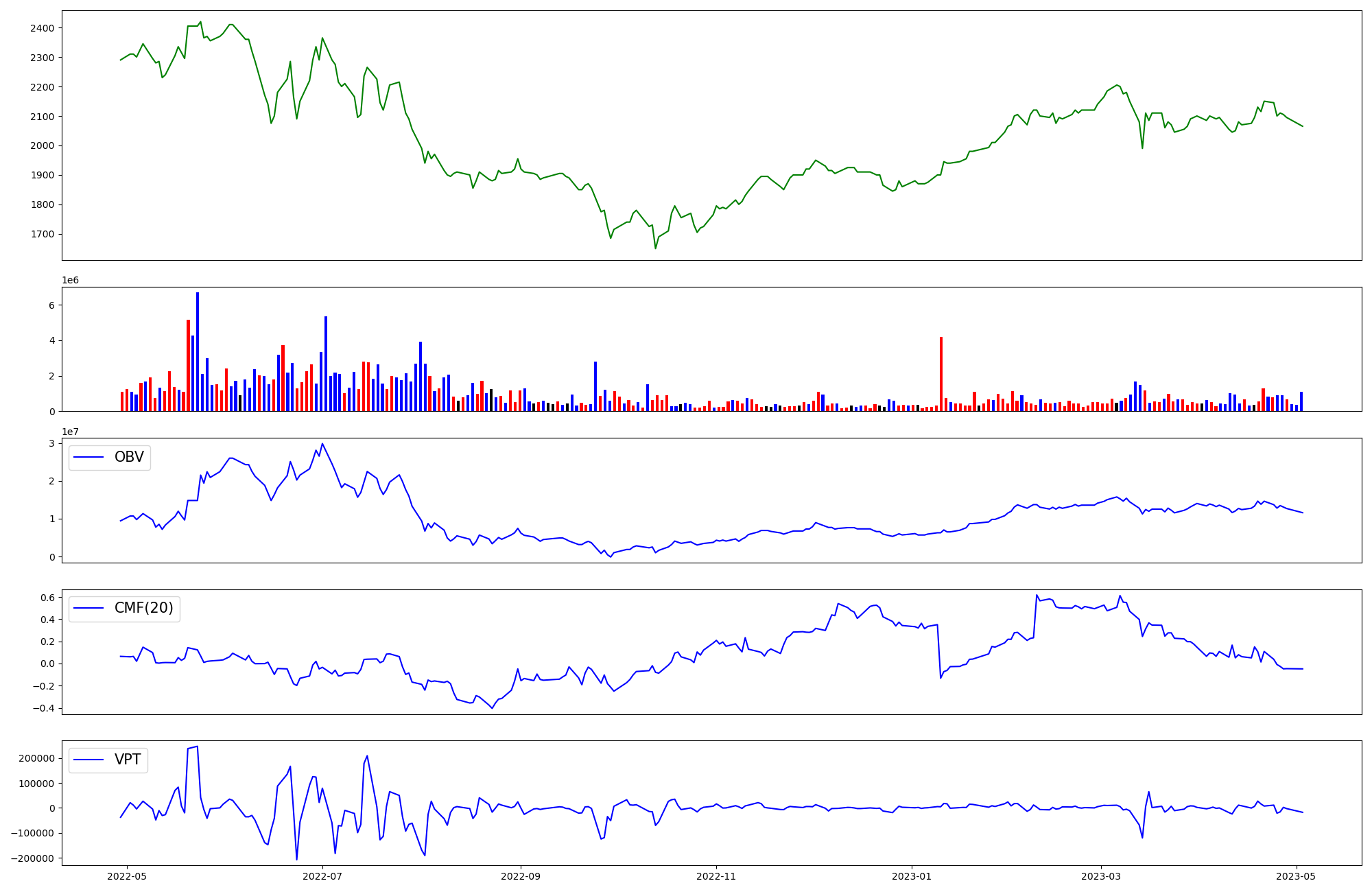 | OBV | CMF | VPT | |