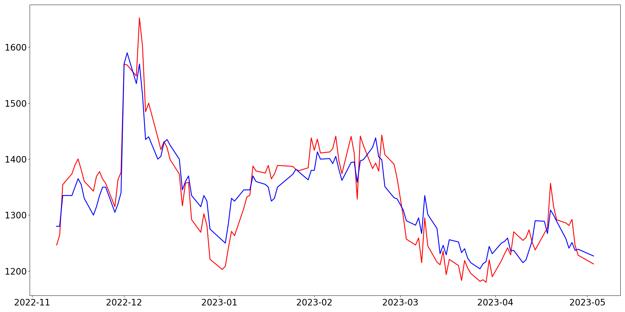 [ - : 실제값(종가) / - : 예측값(종가) ]