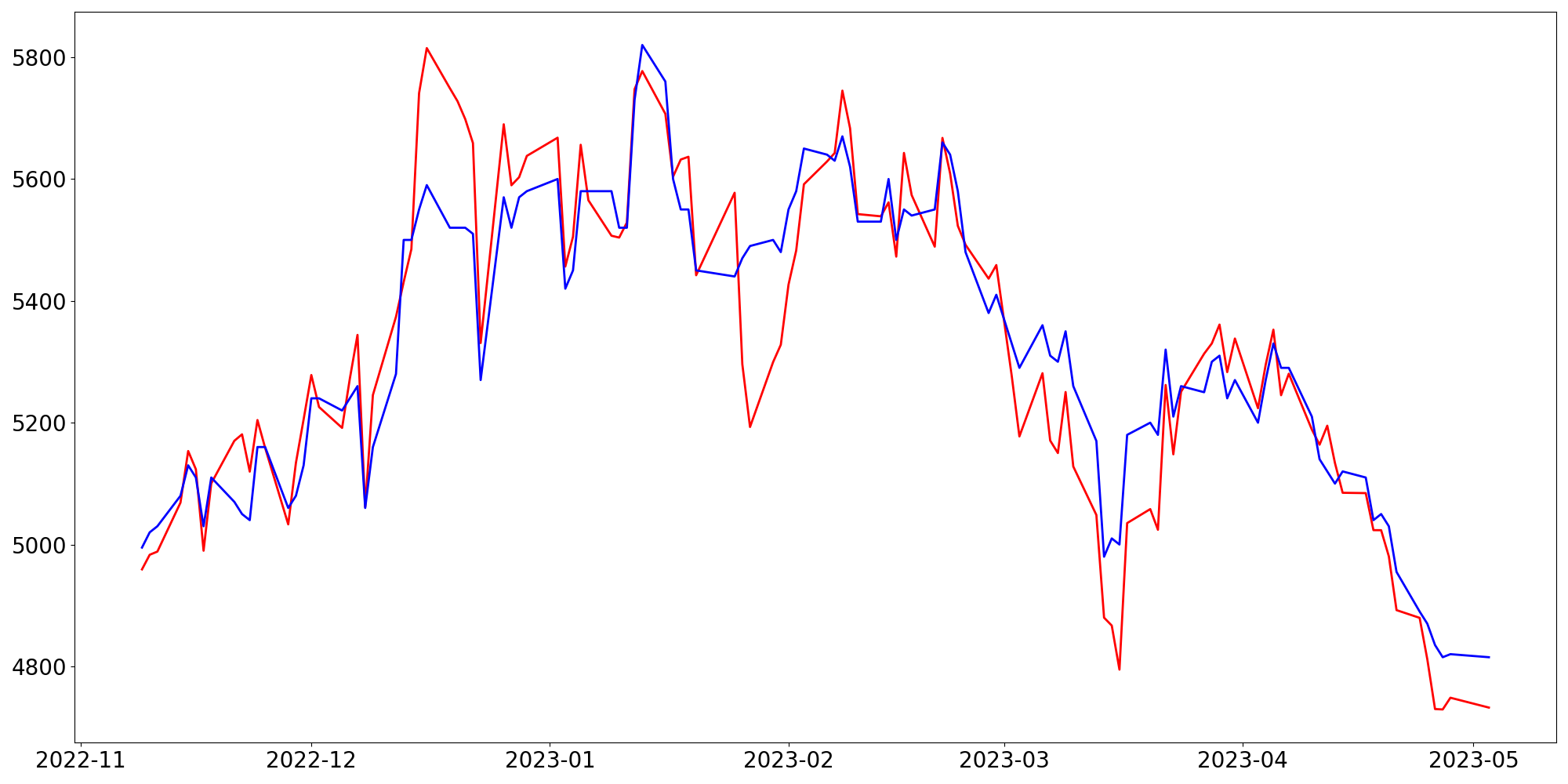 [ - : 실제값(종가) / - : 예측값(종가) ]