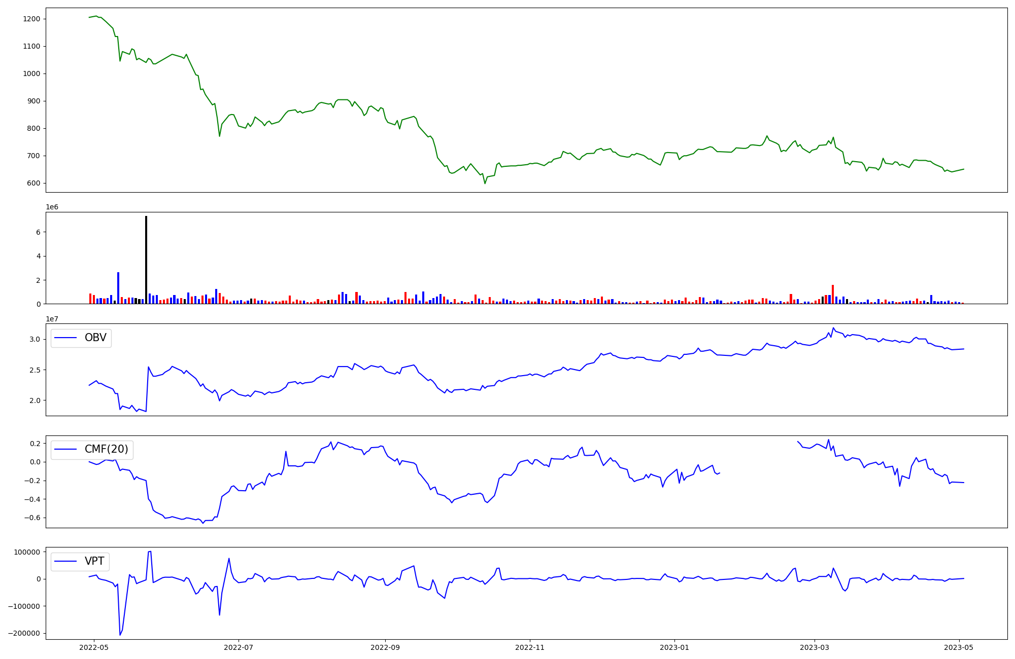 | OBV | CMF | VPT | |