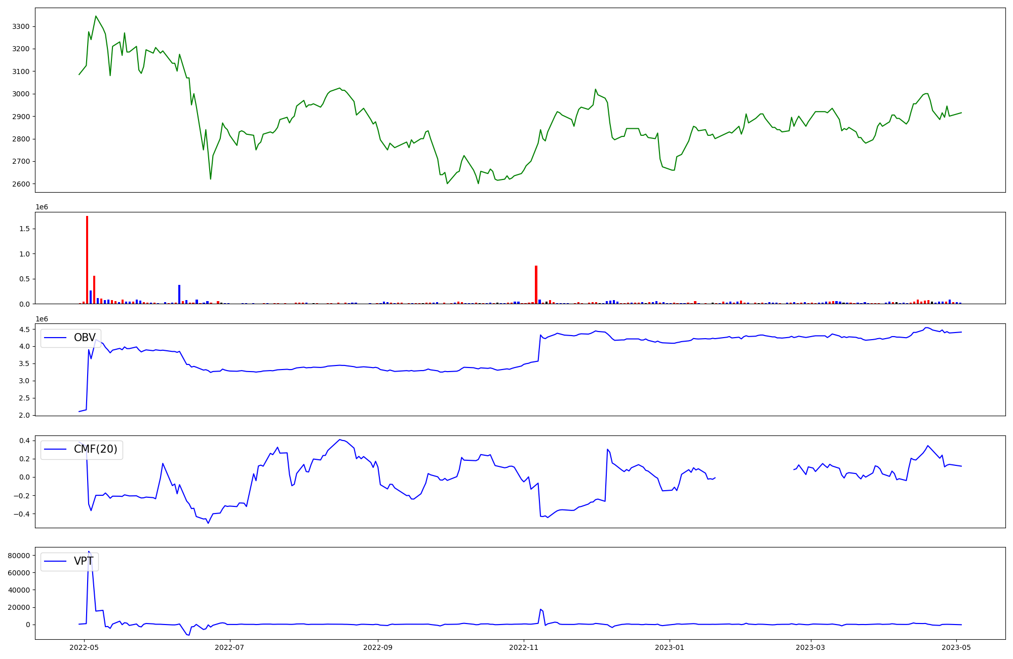 | OBV | CMF | VPT | |