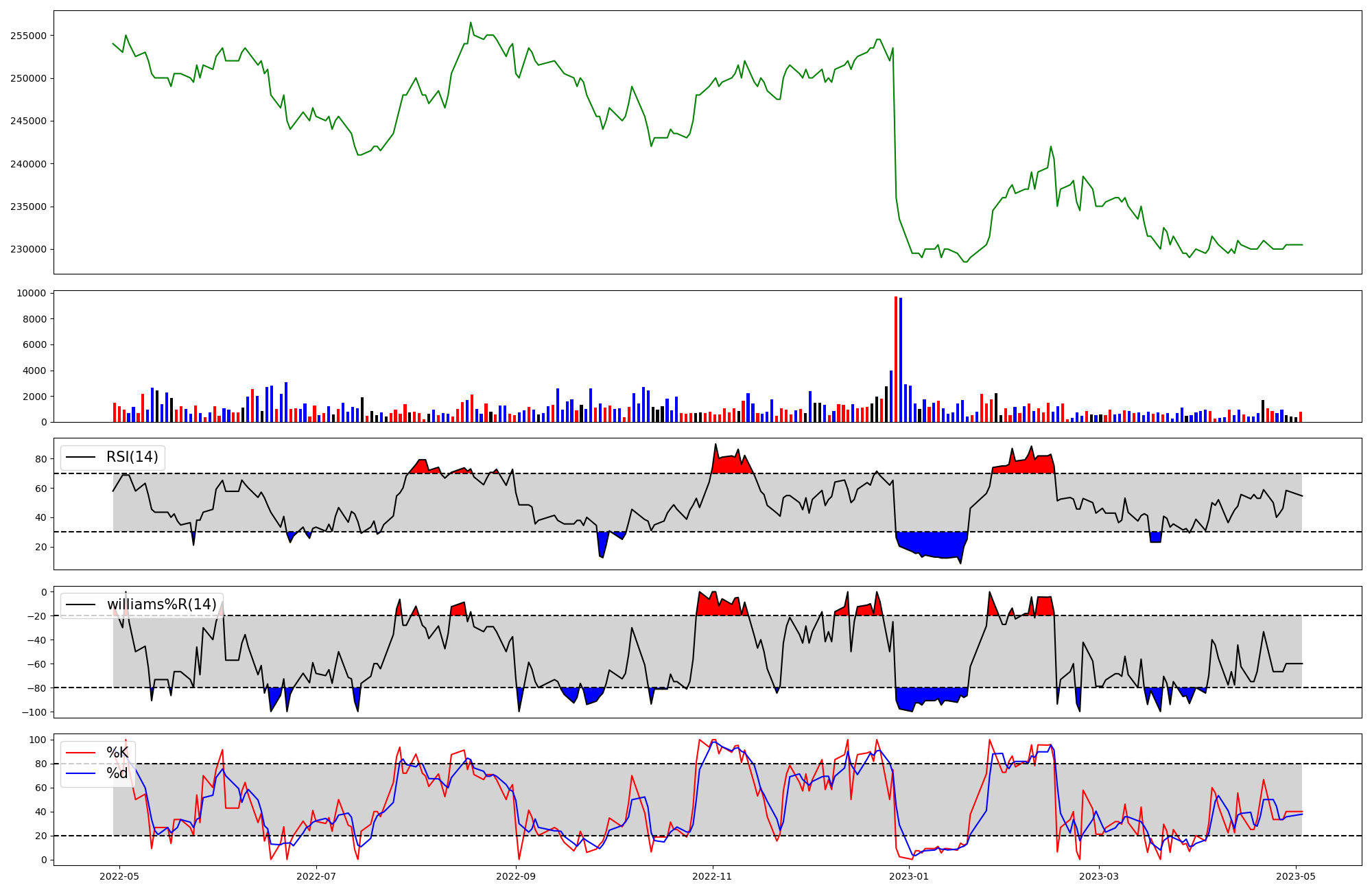 | RSI | Williams %R | stochastic(%K) | |