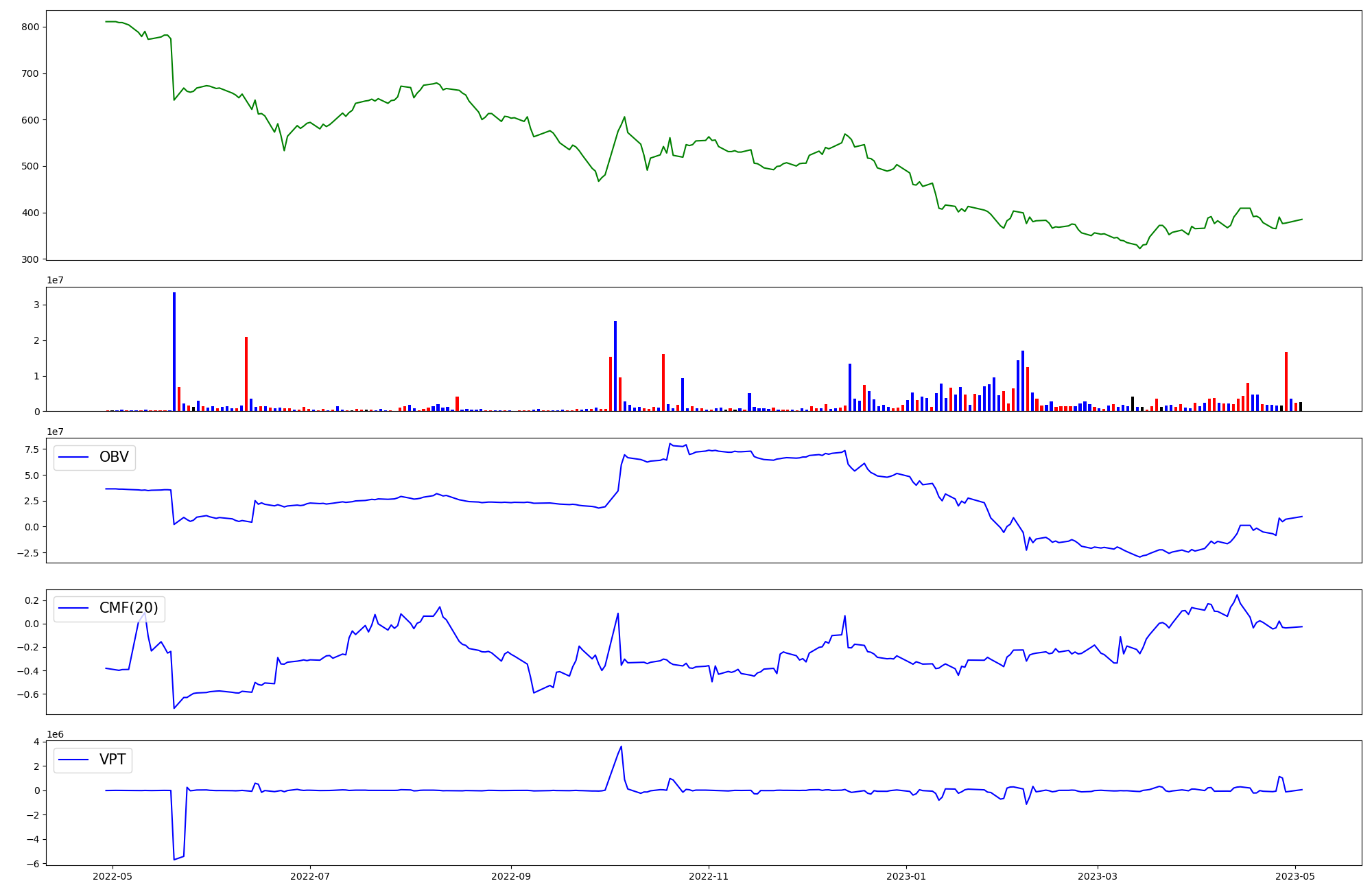 | OBV | CMF | VPT | |