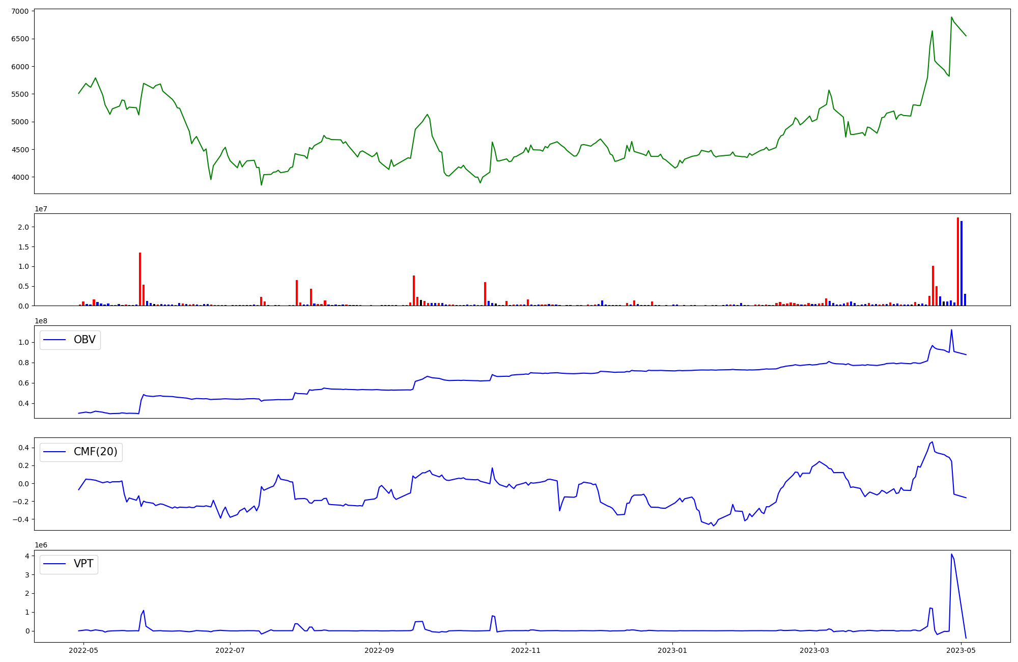 | OBV | CMF | VPT | |