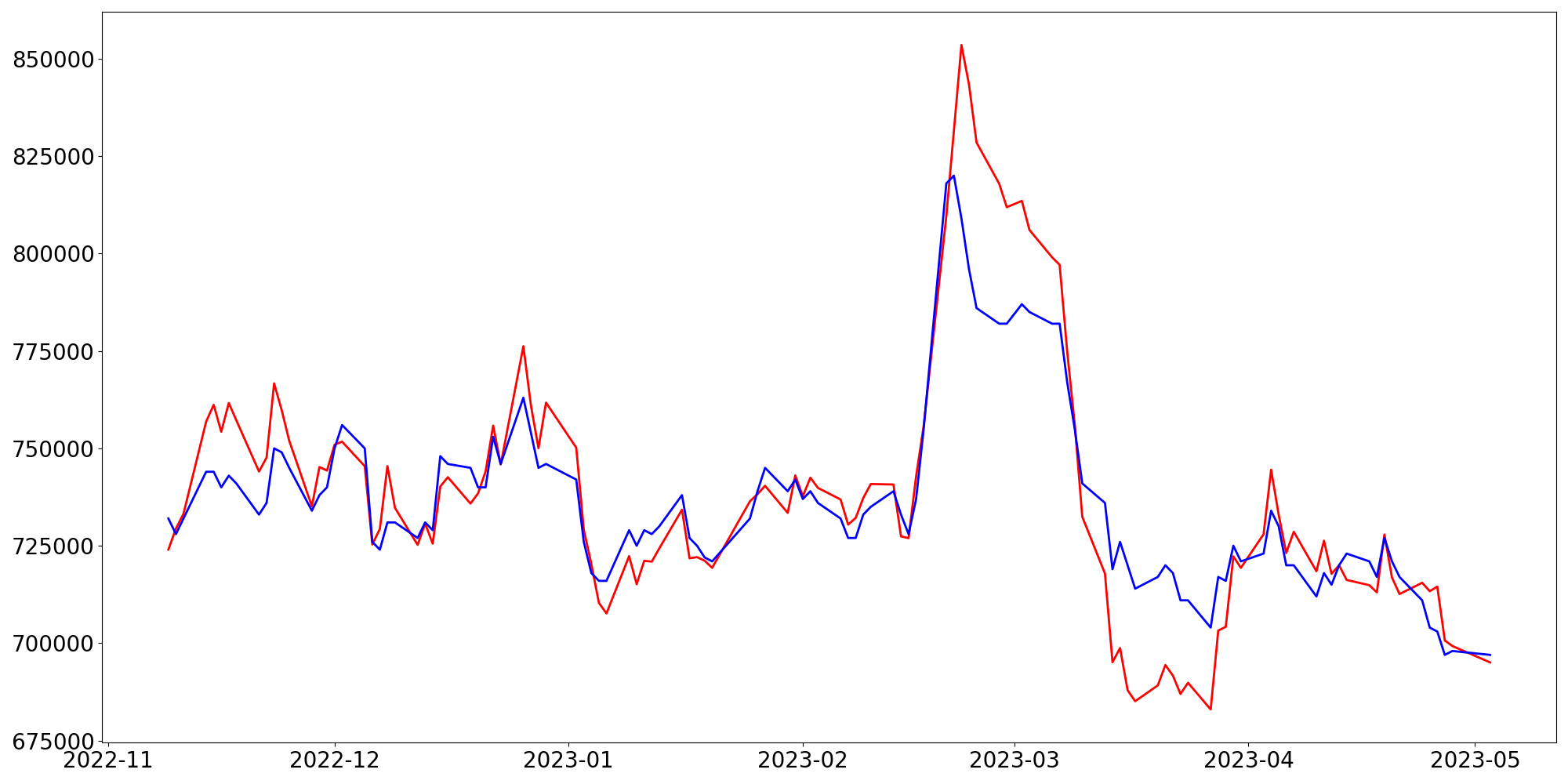 [ - : 실제값(종가) / - : 예측값(종가) ]