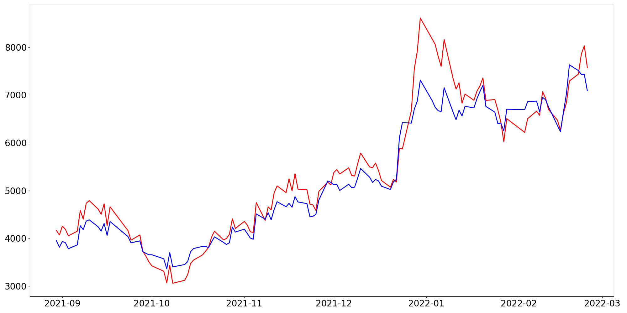 [ - : 실제값(종가) / - : 예측값(종가) ]