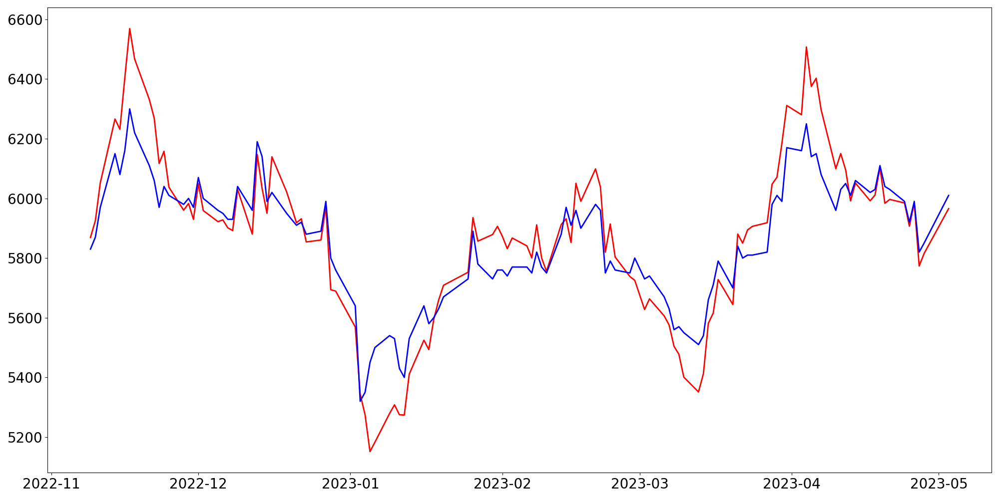 [ - : 실제값(종가) / - : 예측값(종가) ]