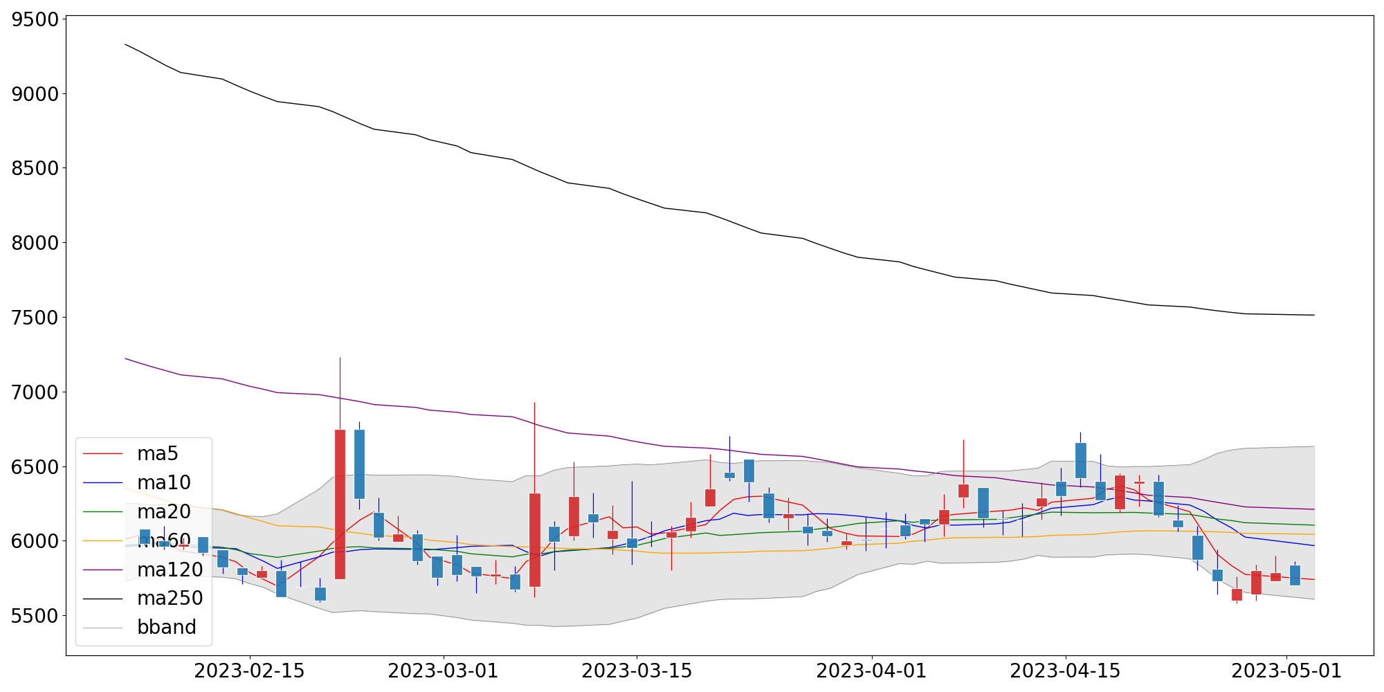 □ 오늘의 종가 : 5,700 (-90, -1.55%)