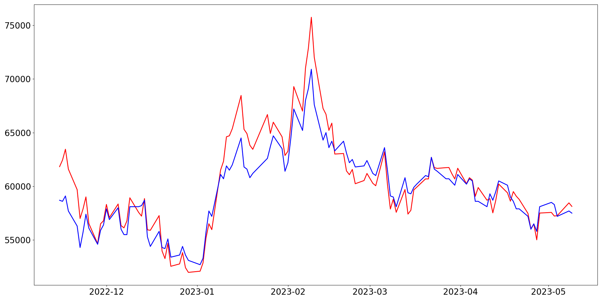 [ - : 실제값(종가) / - : 예측값(종가) ]