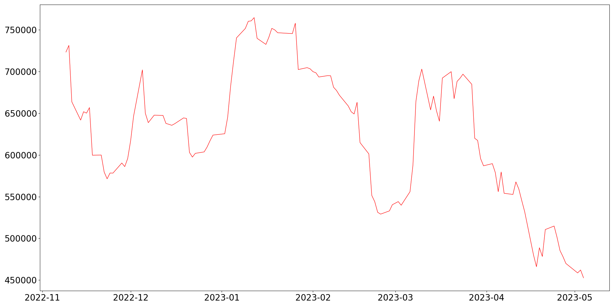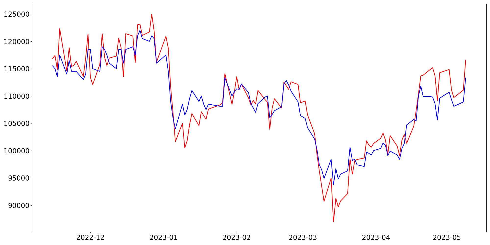 [ - : 실제값(종가) / - : 예측값(종가) ]