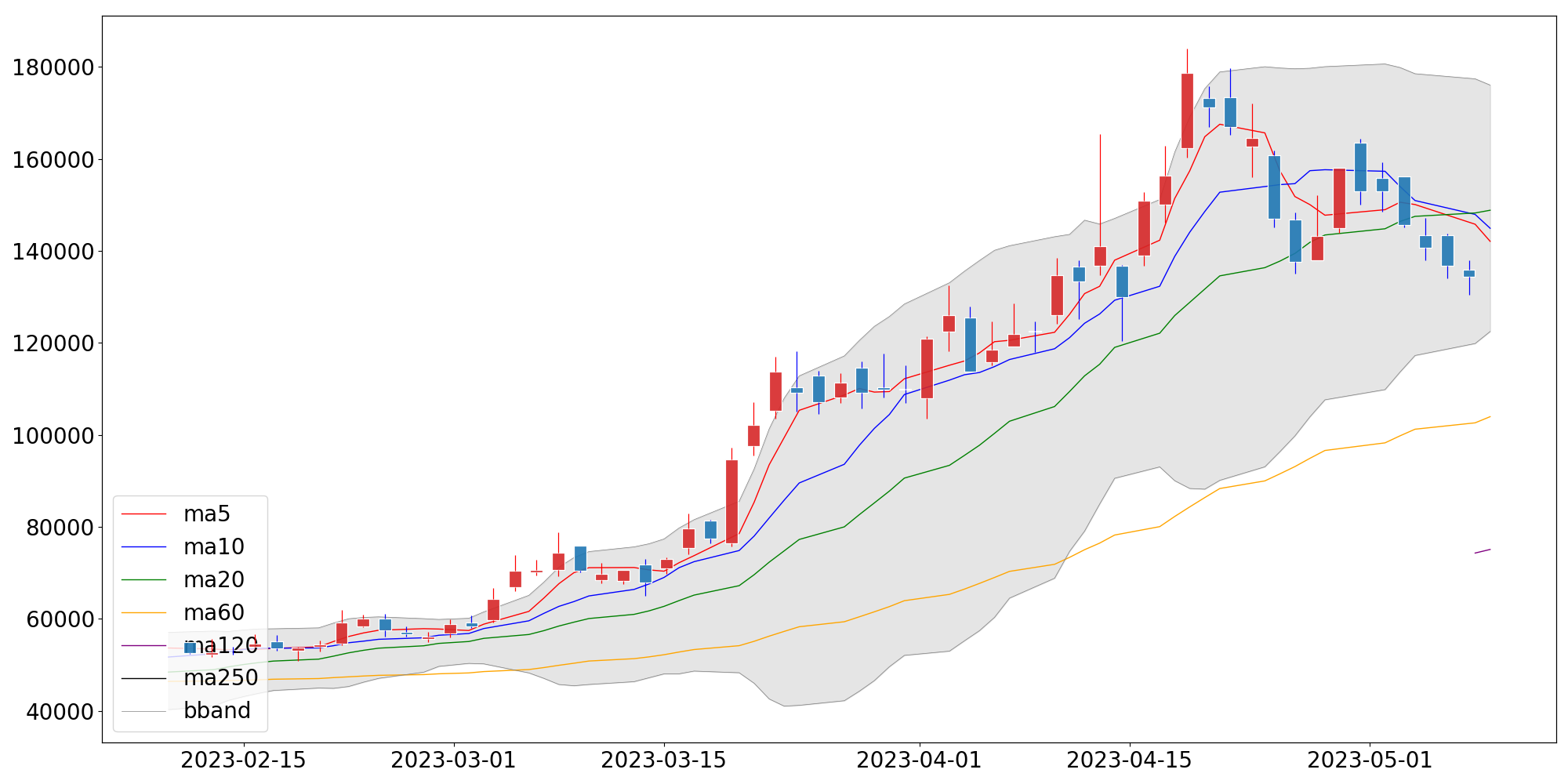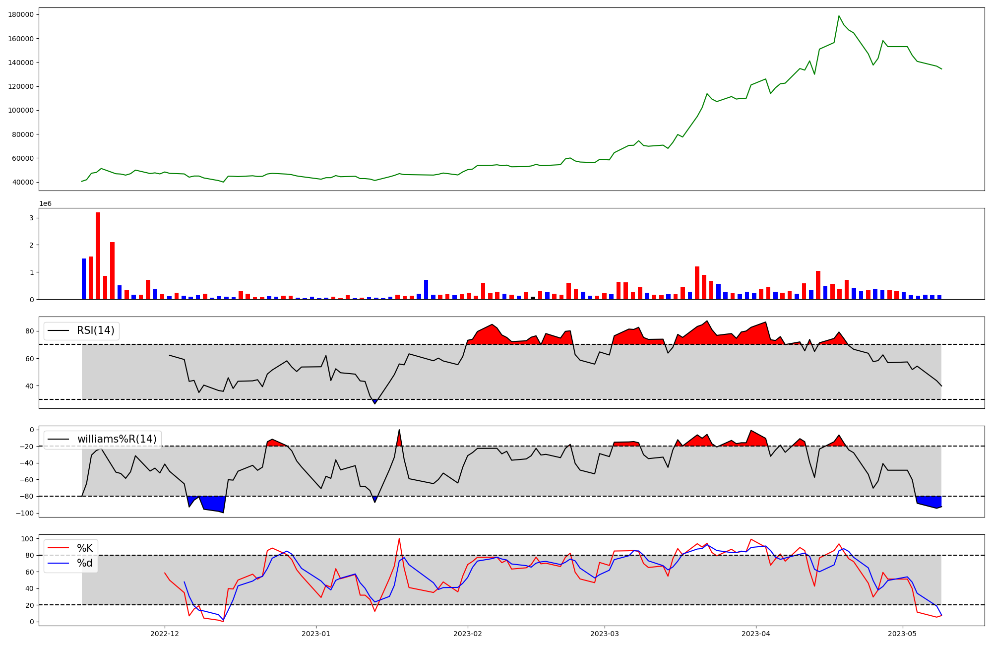 □ 장기 : 현재 종가가 장기(250일) 이동평균값(nan원)을 상회 하여 장기적 추세 상승 중