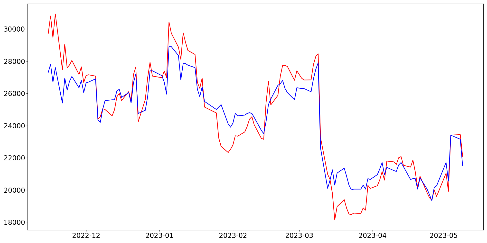 [ - : 실제값(종가) / - : 예측값(종가) ]