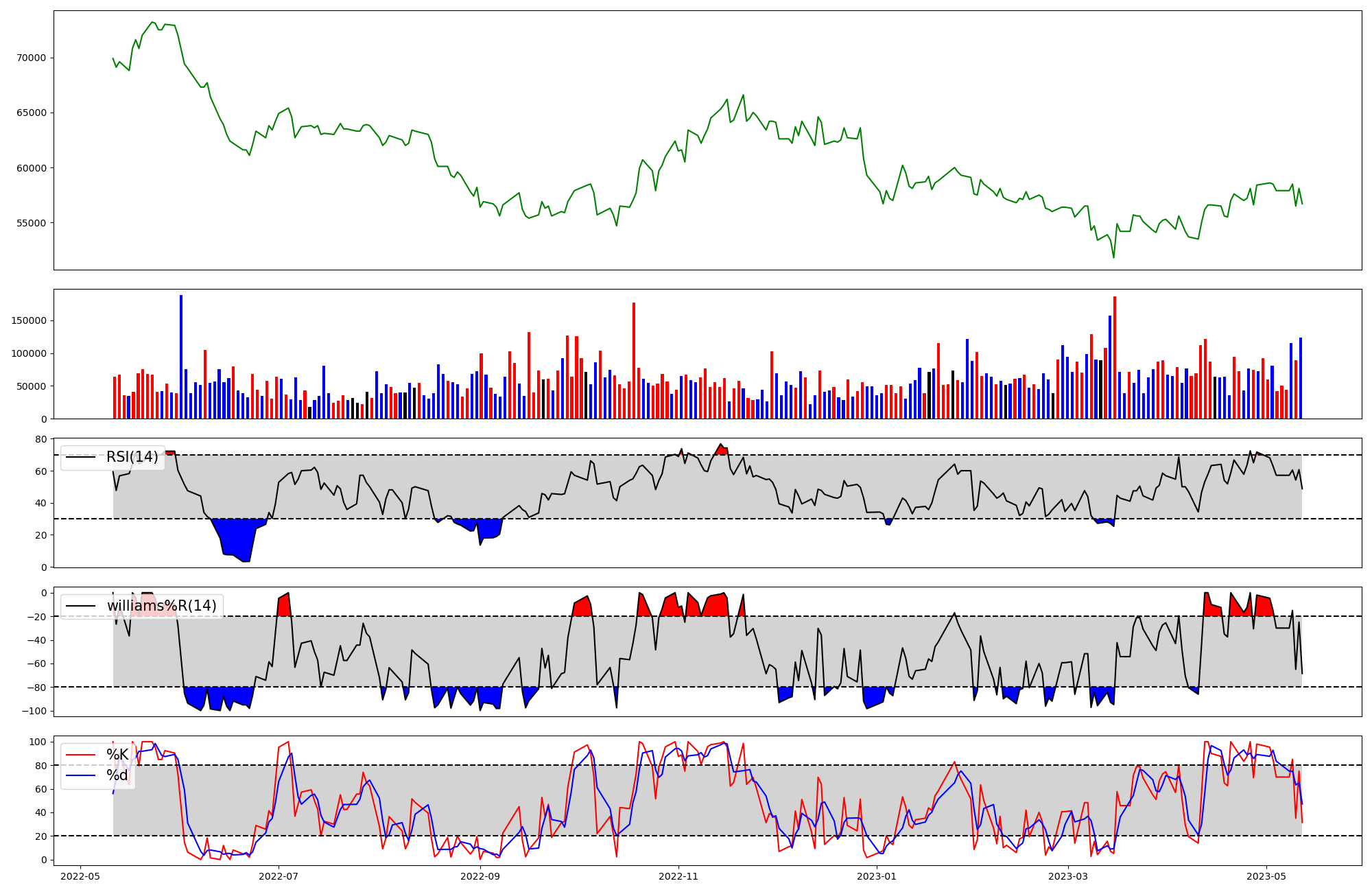 | RSI | Williams %R | stochastic(%K) | |