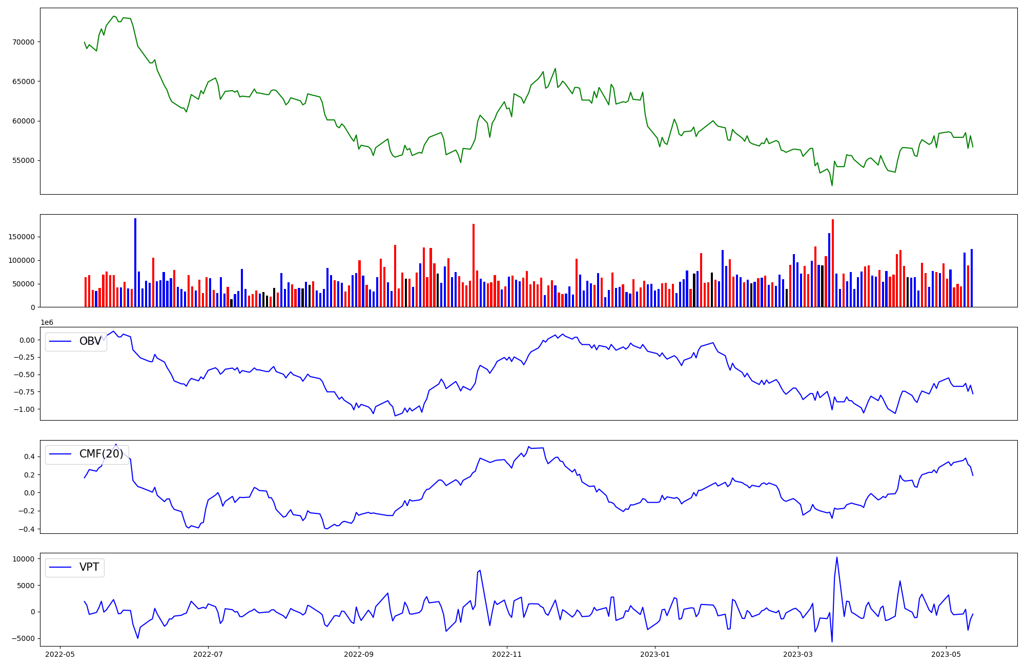 | OBV | CMF | VPT | |