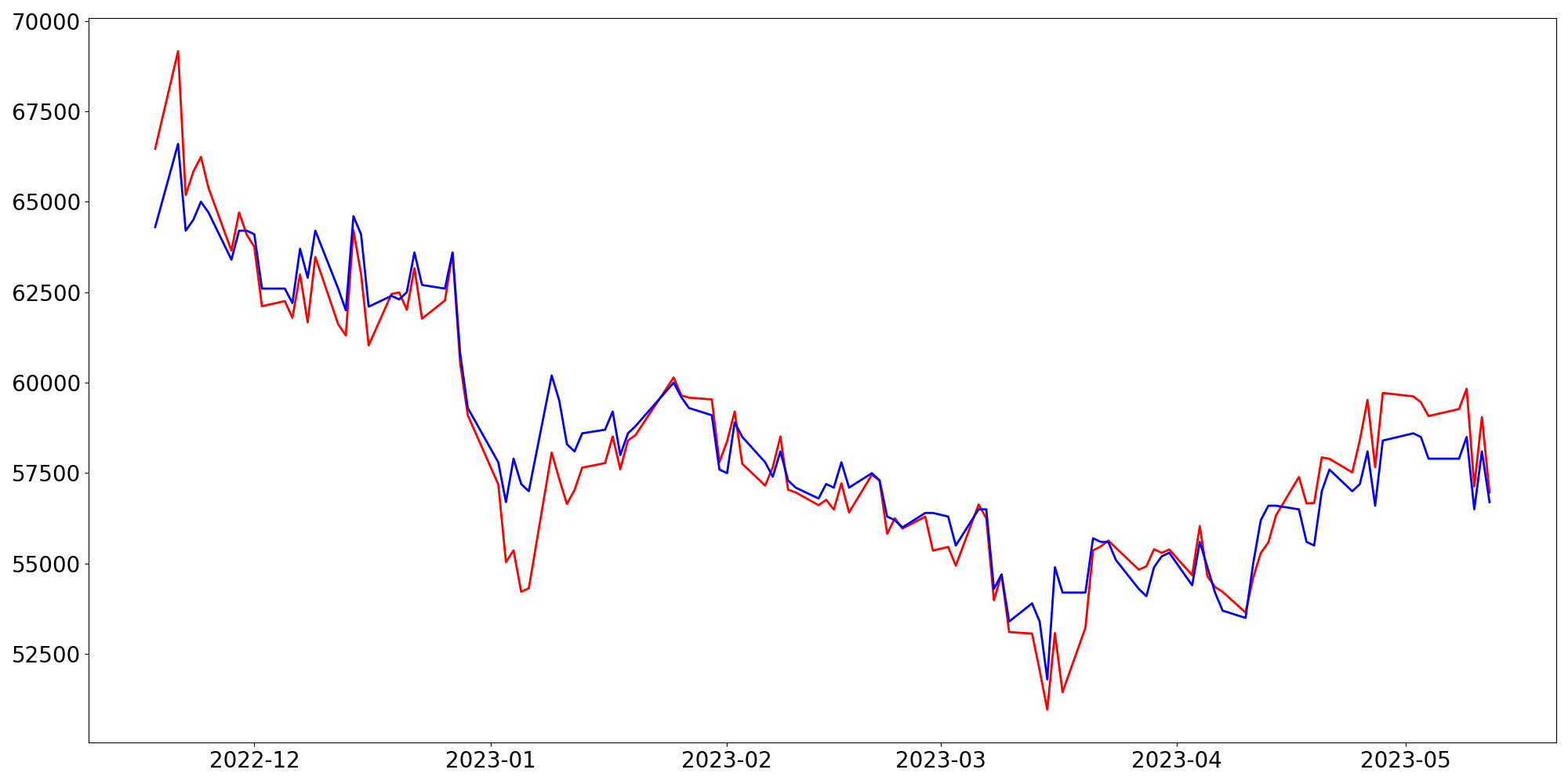 [ - : 실제값(종가) / - : 예측값(종가) ]