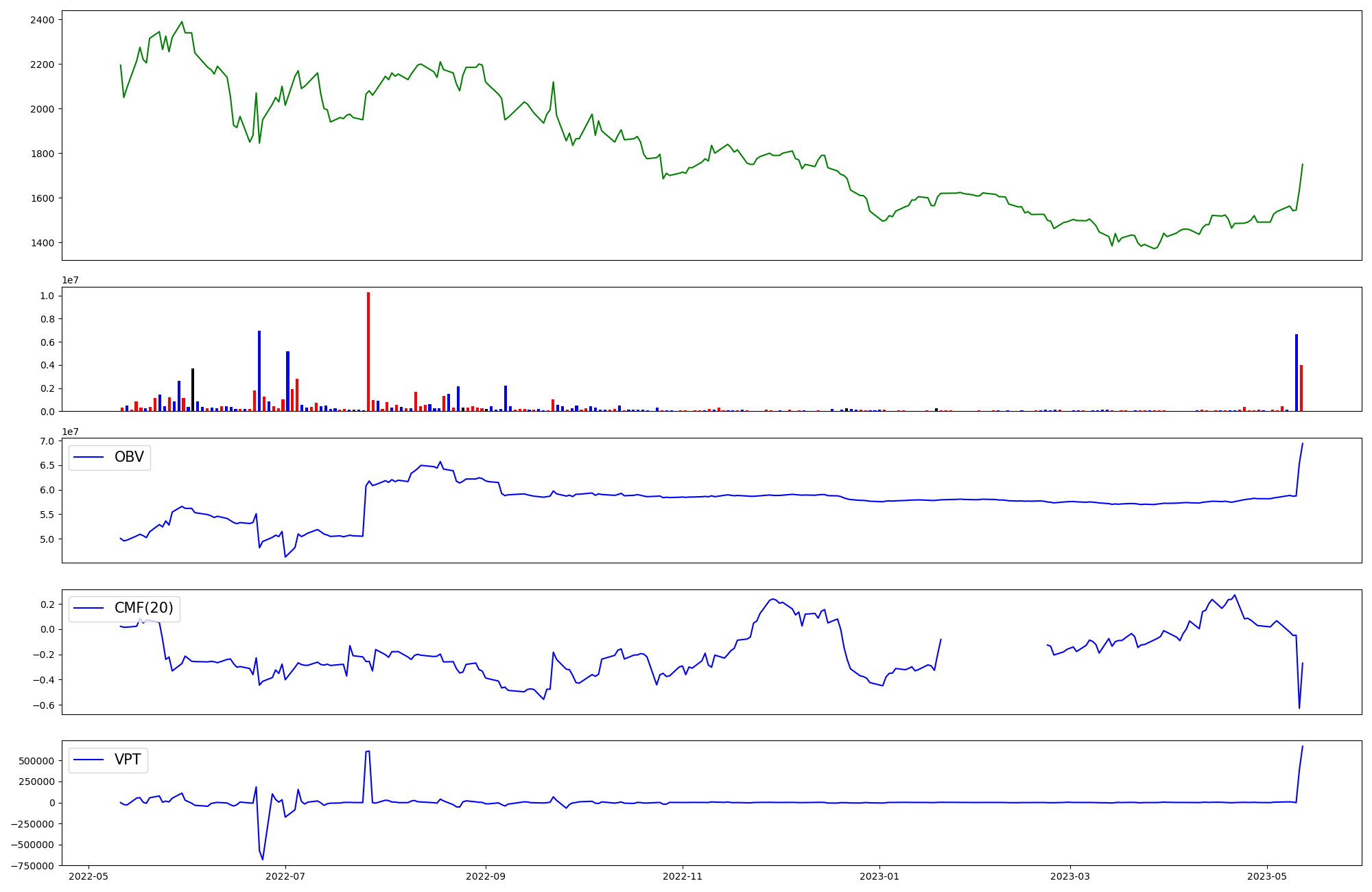 | OBV | CMF | VPT | |