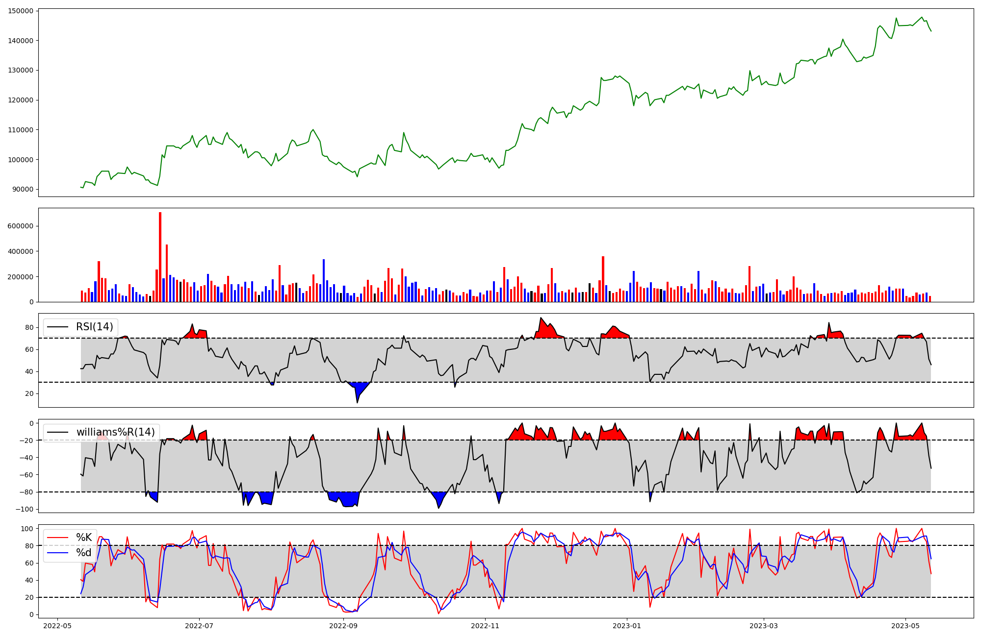 | RSI | Williams %R | stochastic(%K) | |