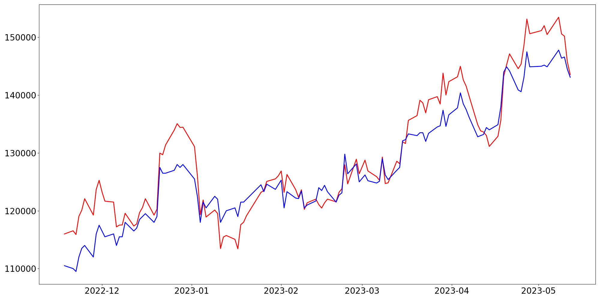 [ - : 실제값(종가) / - : 예측값(종가) ]