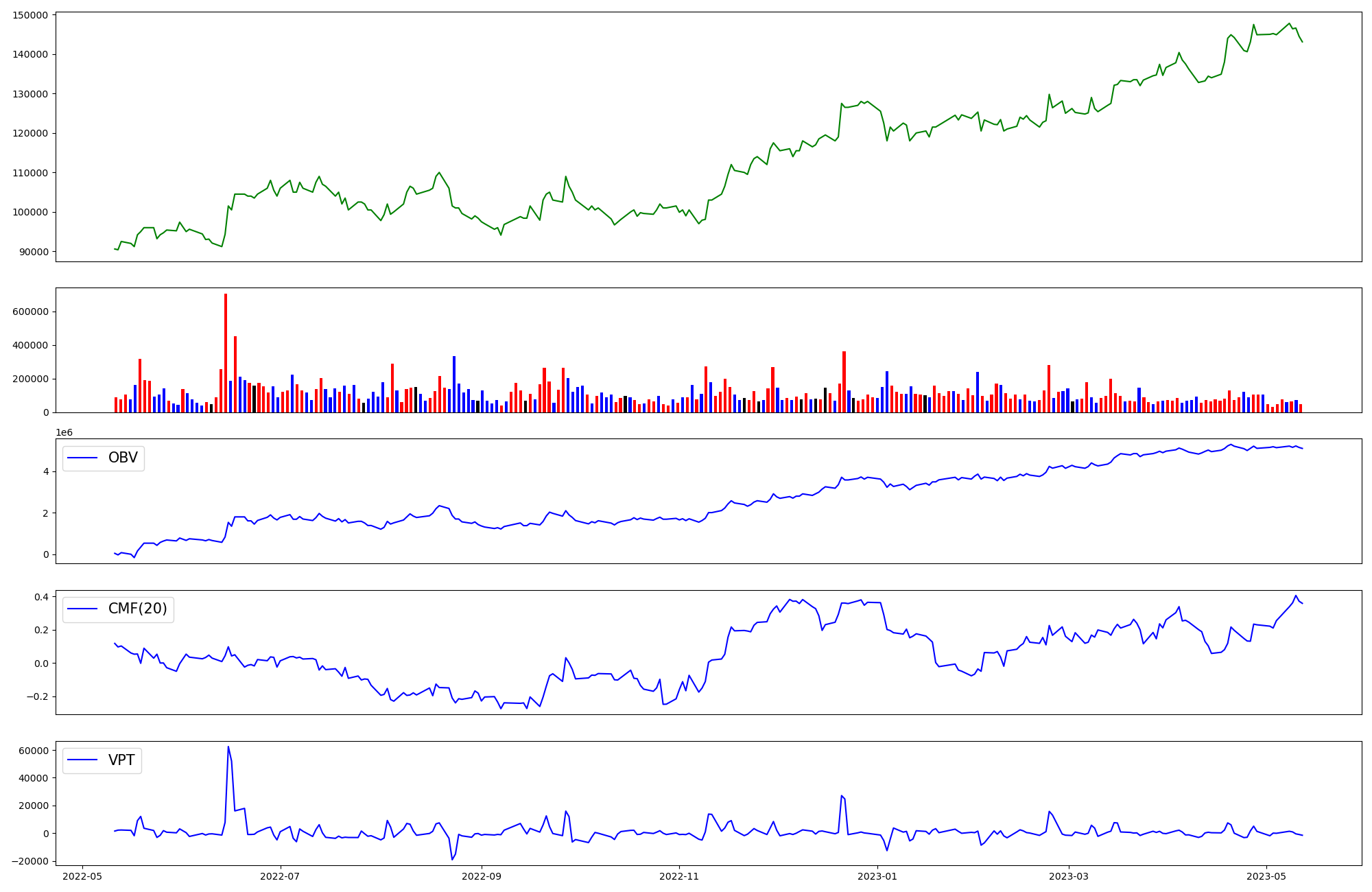 | OBV | CMF | VPT | |