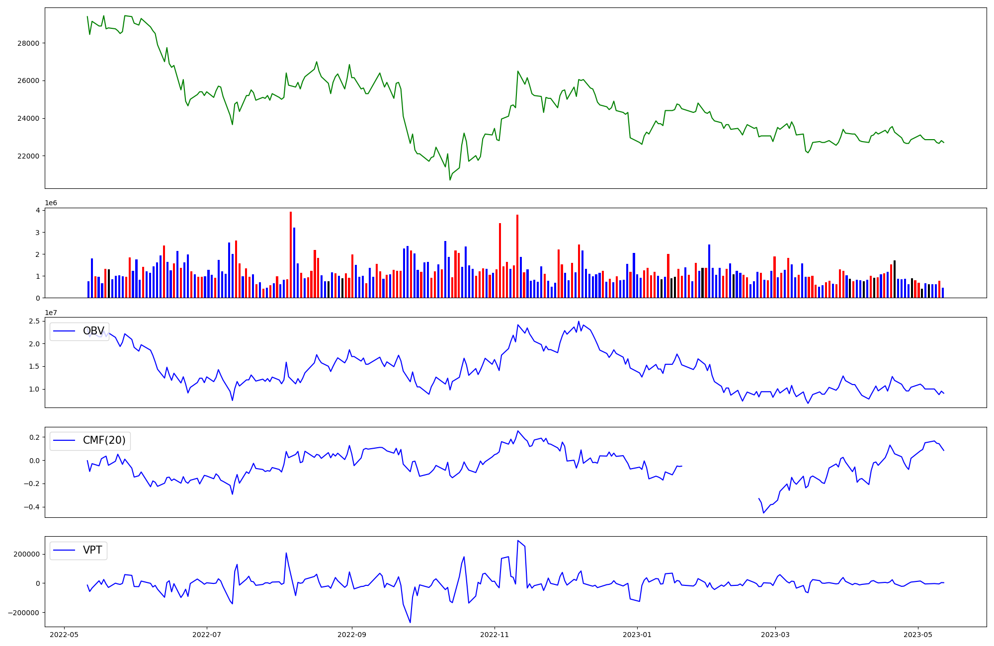 | OBV | CMF | VPT | |