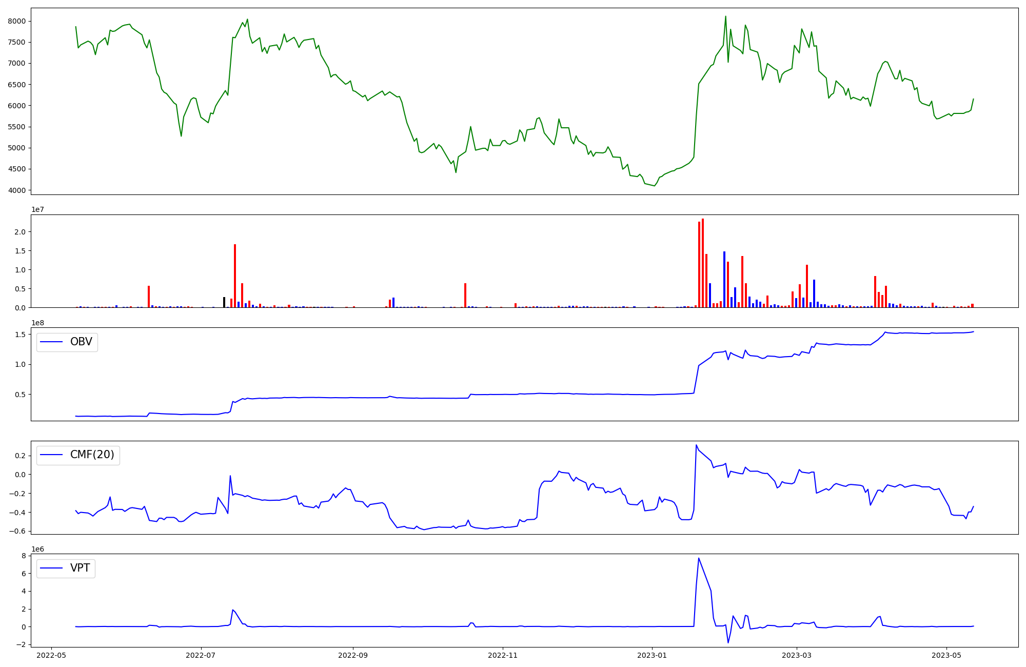 | OBV | CMF | VPT | |