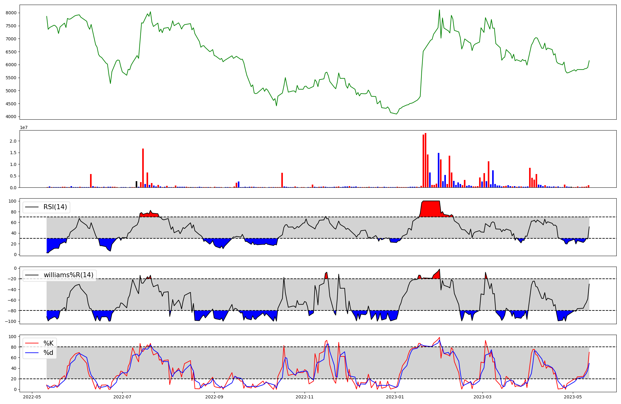 | RSI | Williams %R | stochastic(%K) | |
