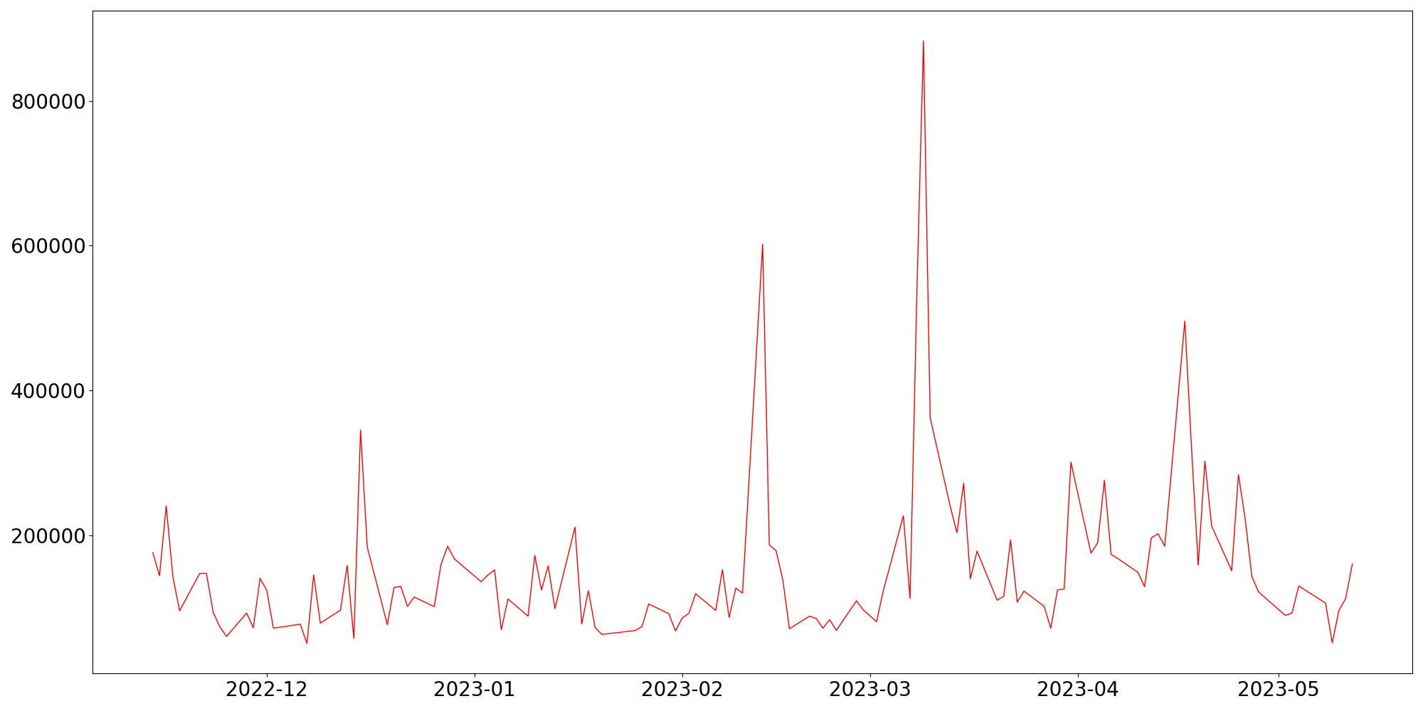 [ - : 실제값(종가) / - : 예측값(종가) ]