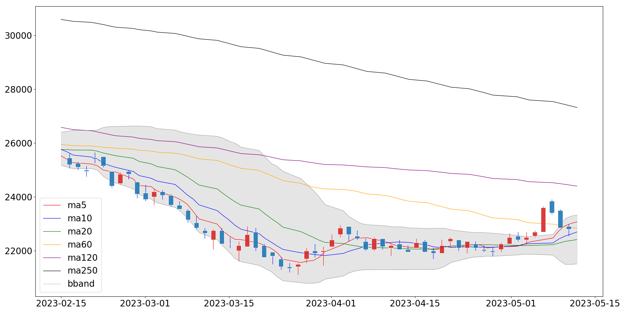 | 단순이동평균 | 23,070.00 | 22,695.00 | 22,412.50 |