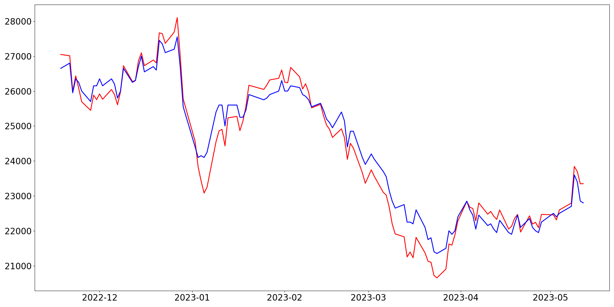 [ - : 실제값(종가) / - : 예측값(종가) ]