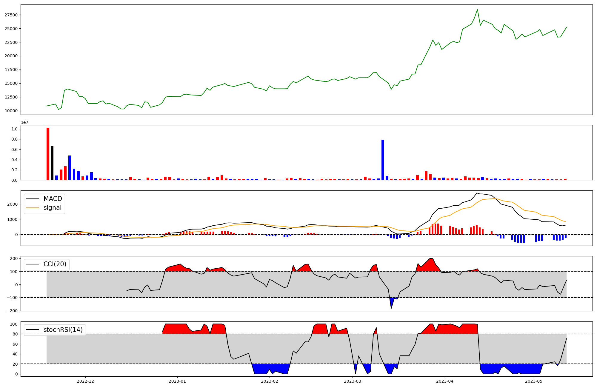 □ 장기 : 현재 종가가 장기(250일) 이동평균값(nan원)을 상회 하여 장기적 추세 상승 중