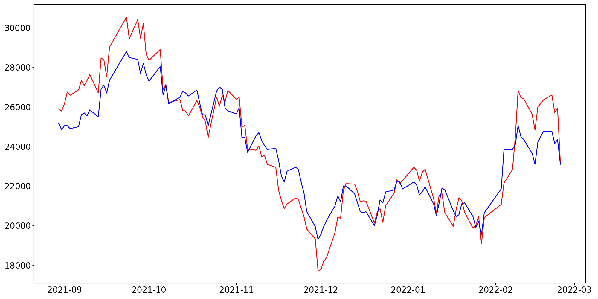 [ - : 실제값(종가) / - : 예측값(종가) ]