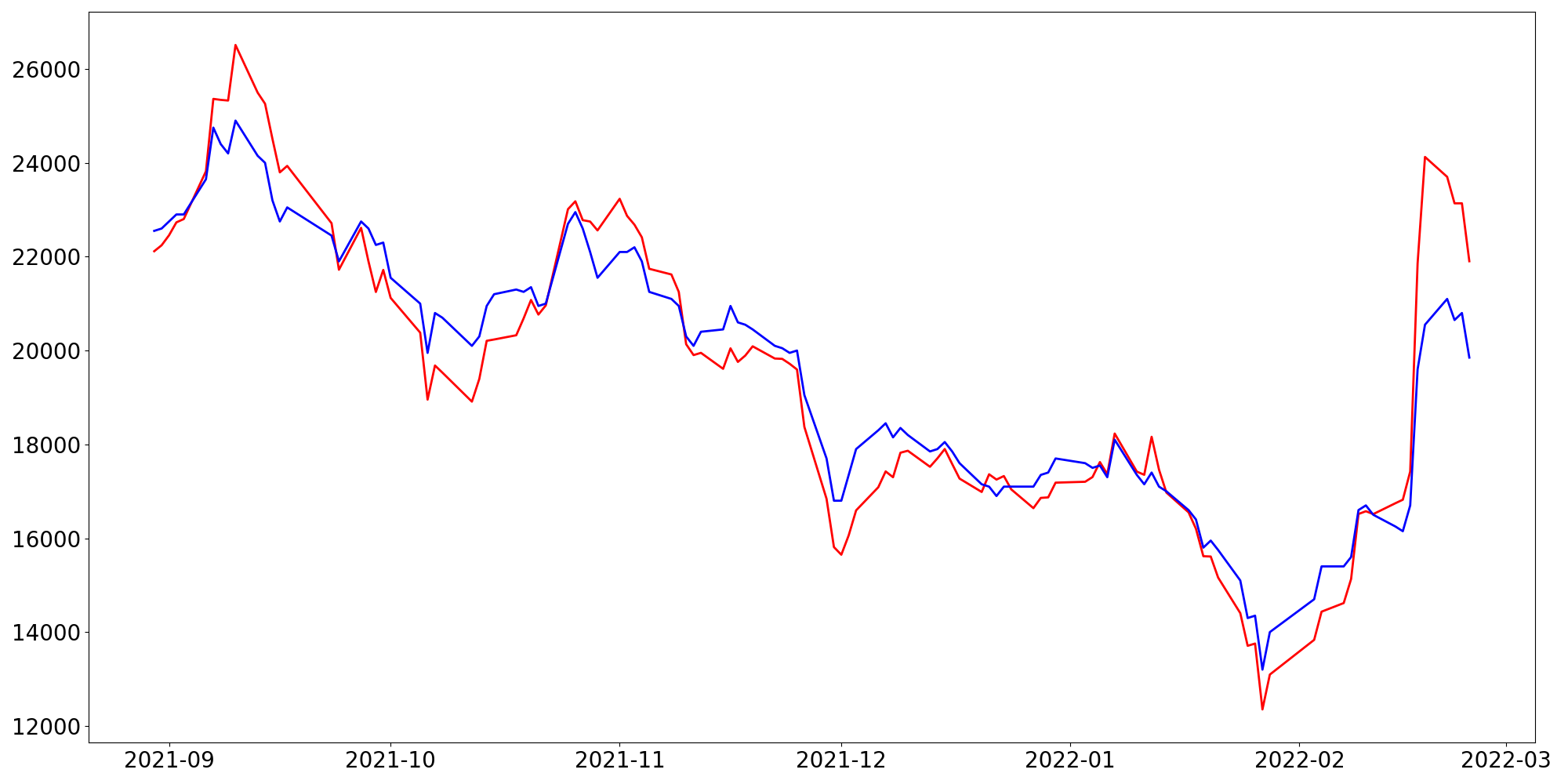 [ - : 실제값(종가) / - : 예측값(종가) ]