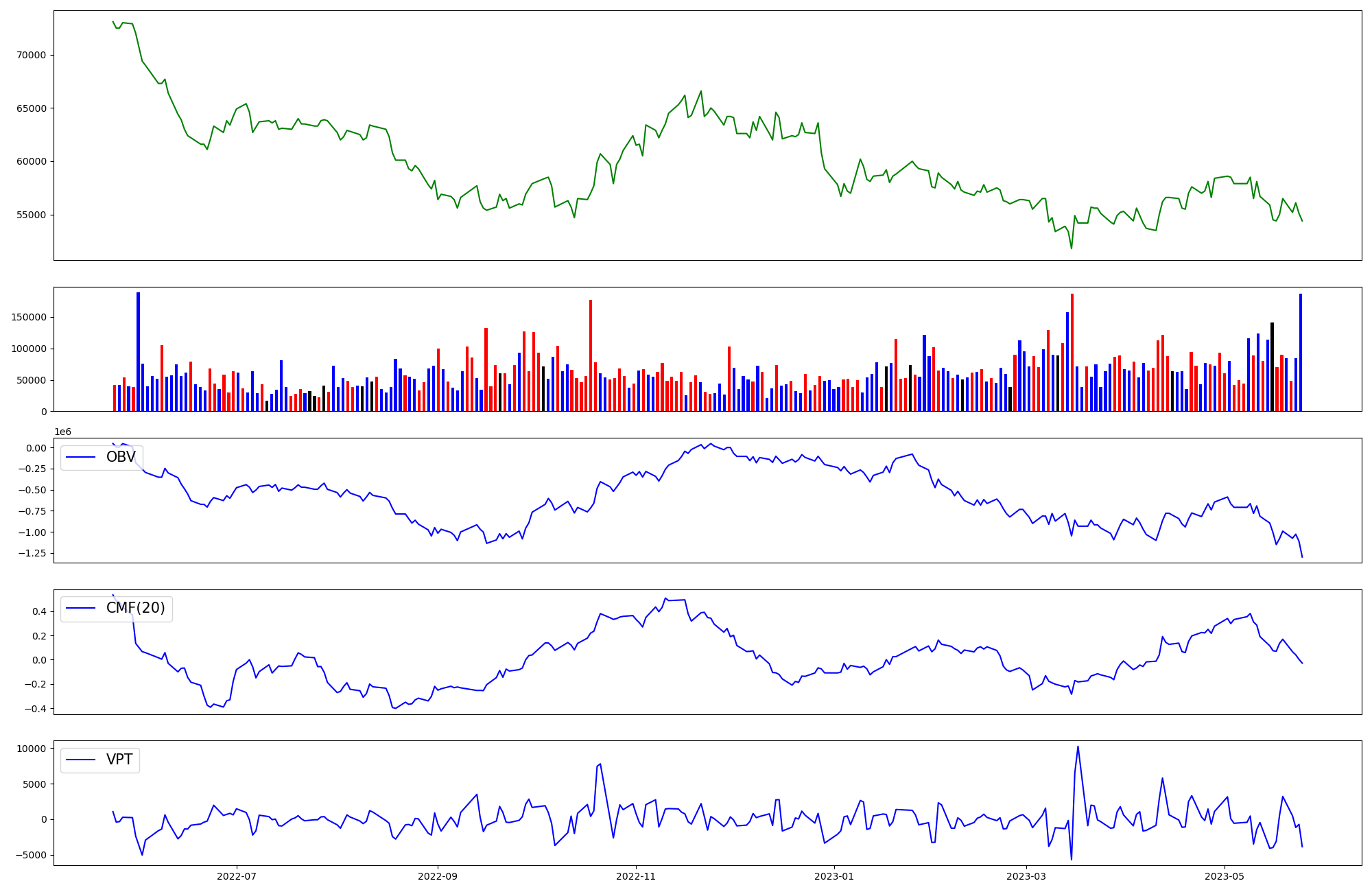 | OBV | CMF | VPT | |