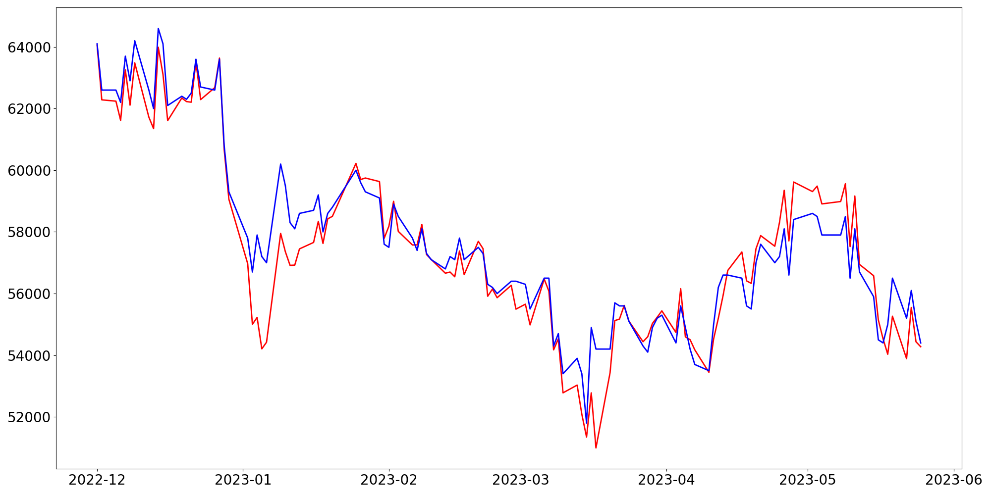 [ - : 실제값(종가) / - : 예측값(종가) ]