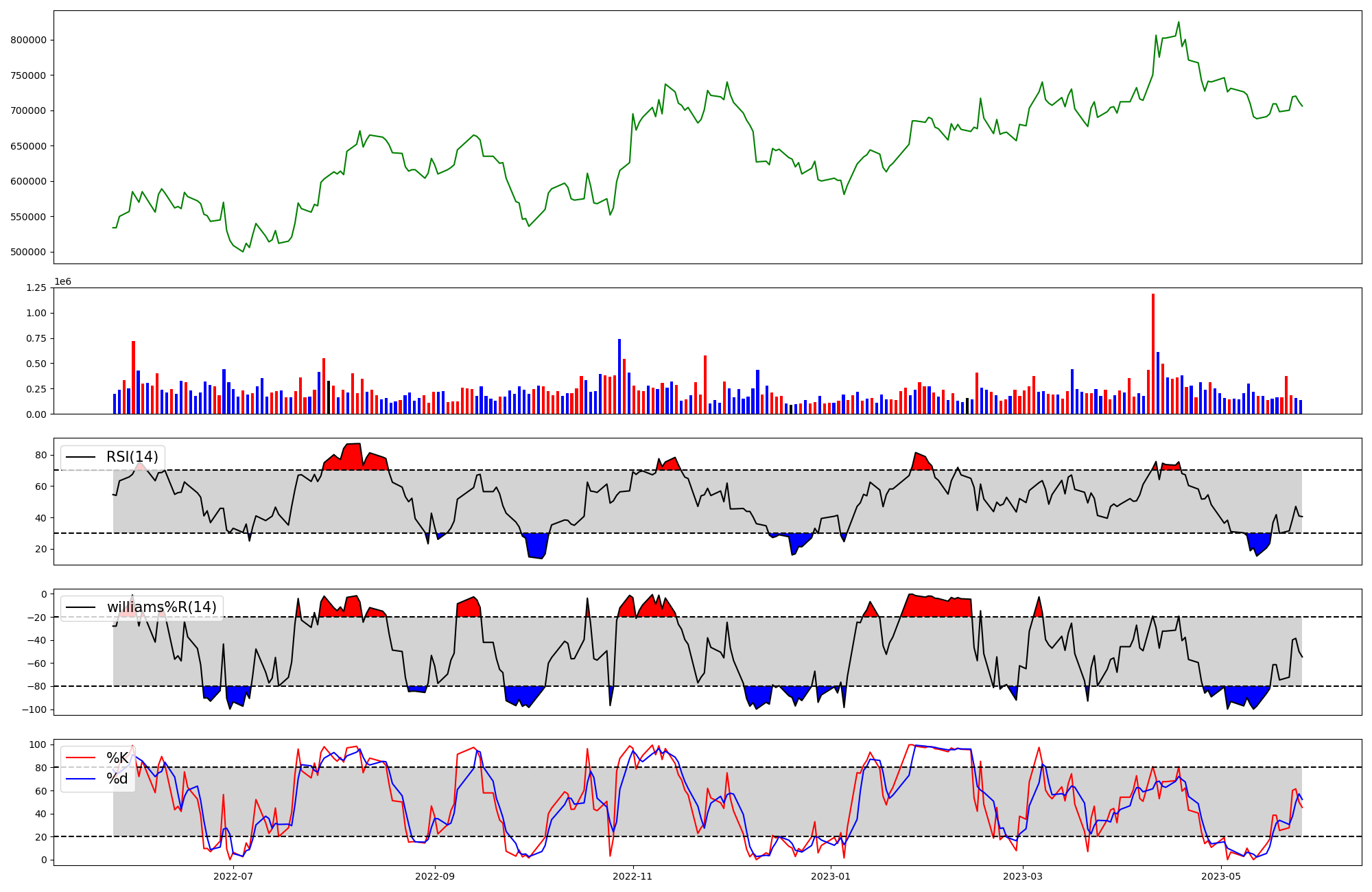 | RSI | Williams %R | stochastic(%K) | |