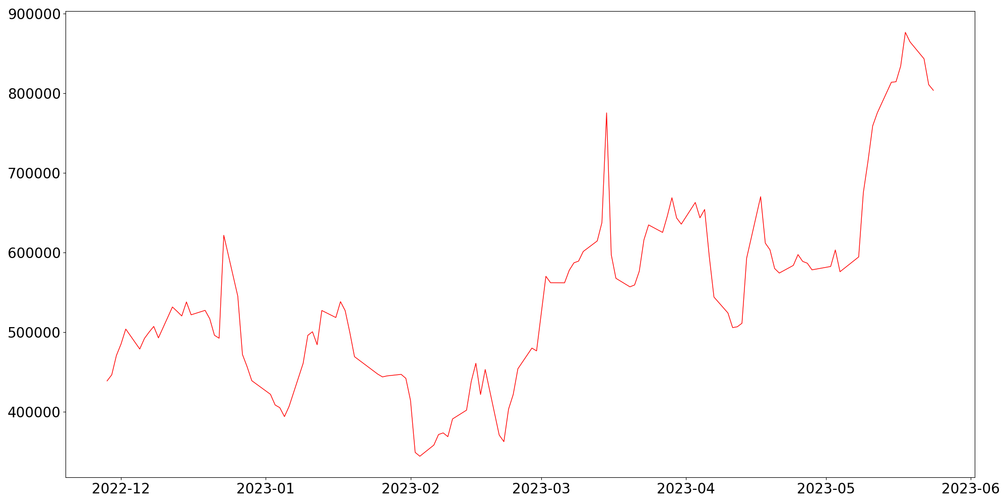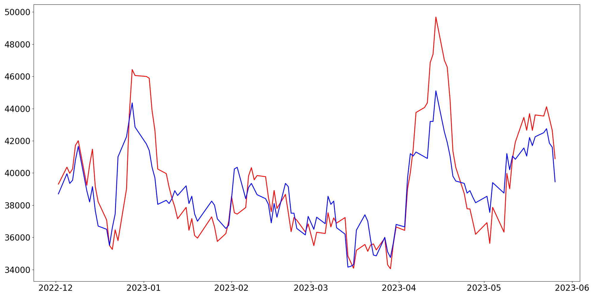 [ - : 실제값(종가) / - : 예측값(종가) ]