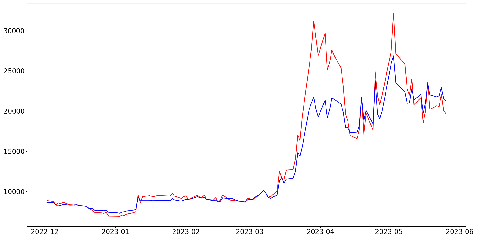 [ - : 실제값(종가) / - : 예측값(종가) ]