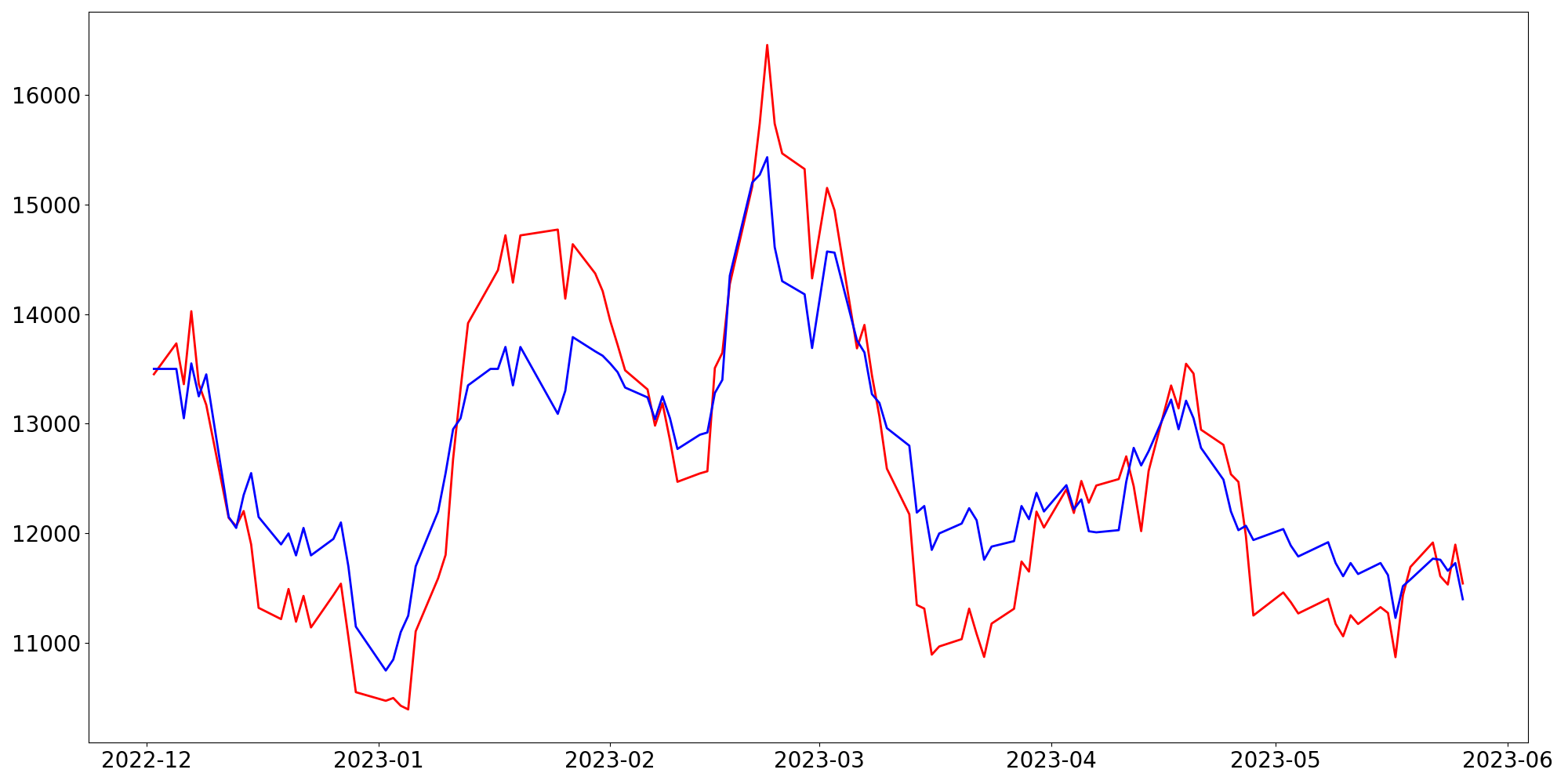 [ - : 실제값(종가) / - : 예측값(종가) ]