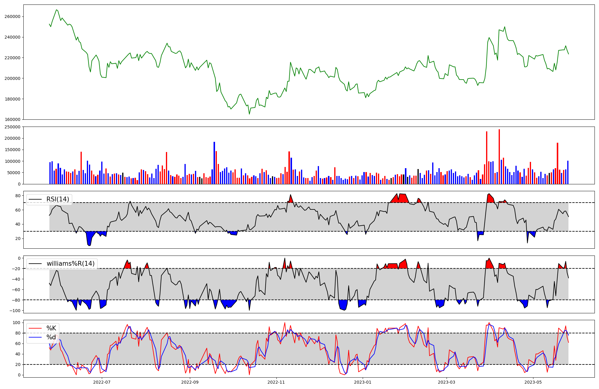 | RSI | Williams %R | stochastic(%K) | |