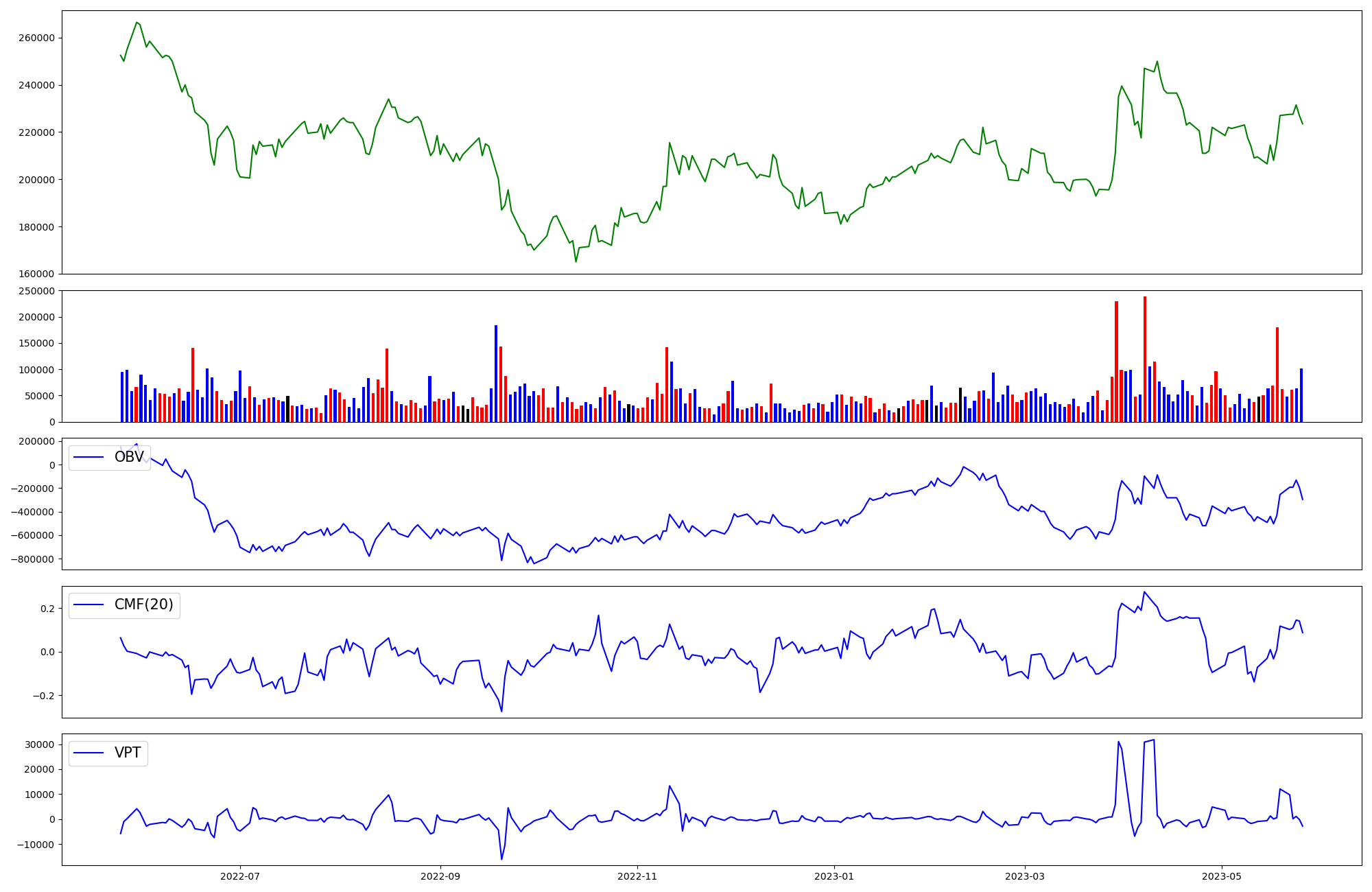 | OBV | CMF | VPT | |