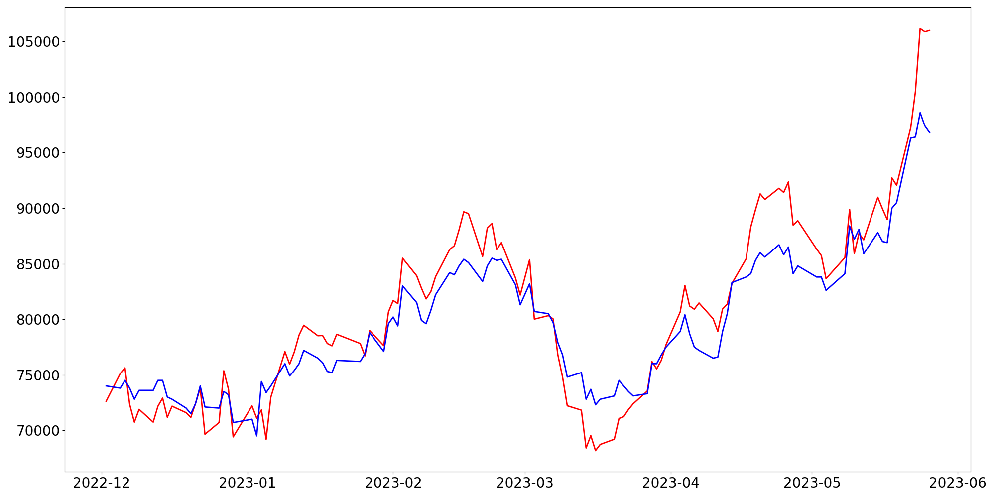 [ - : 실제값(종가) / - : 예측값(종가) ]